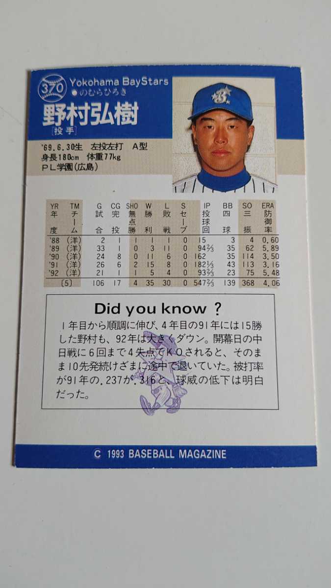 横浜ベイスターズ野村弘樹!1993BBM370横浜大洋ホエールズPL学園 |