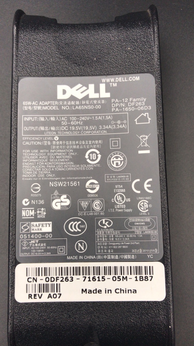 2050154★中古 DELL  ACアダプター LA65NS0-00 19.5V 3.34A DP/N:DF263 現状品