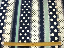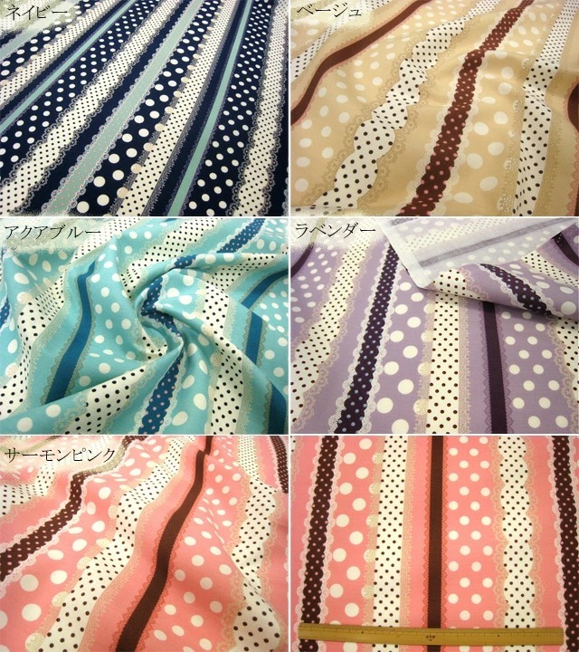 人気のべリーコットンシリーズに新配色のドットボーダー柄が登場しました。レースと水玉のかわいらしいプリントに柔らかいニュアンスカラーがお薦めです。インテリアや洋服、小物まで、どんな作品に仕上げようか...わくわくするボーダー柄です。