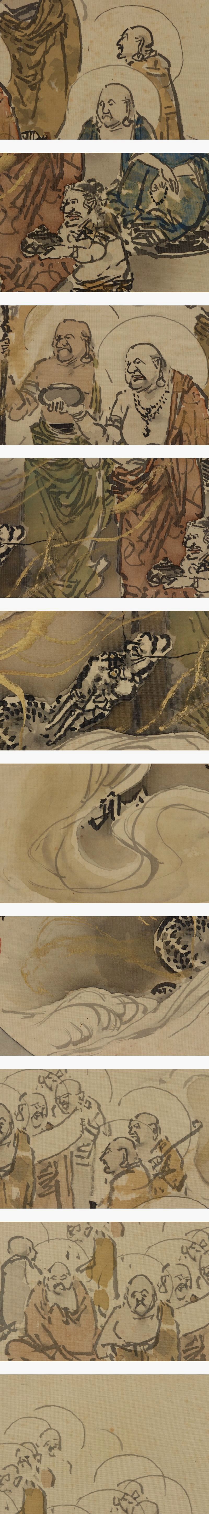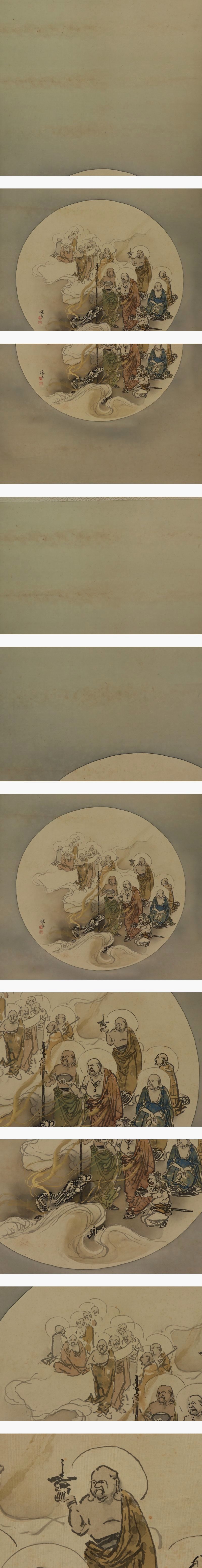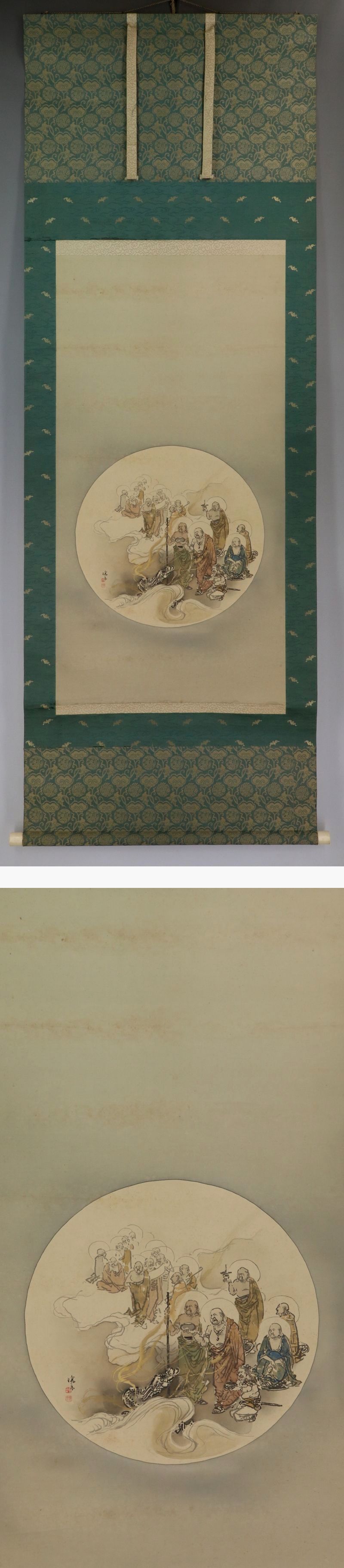 | №2203130【真作】真野暁亭【十六羅漢】◆絹本◆合箱◆掛軸 | |