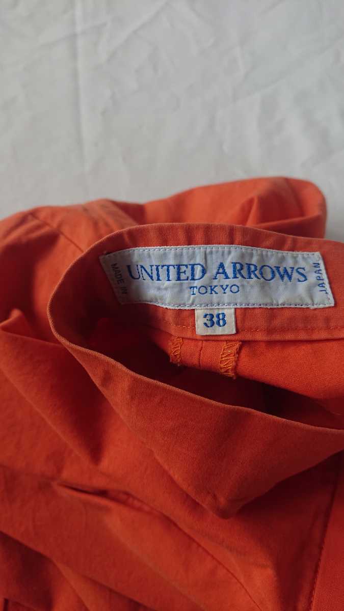 アローズのパンツです。素材は綿で色はオレンジです。、色&デザインはとてもエレガントです。サイズは38表記です。
