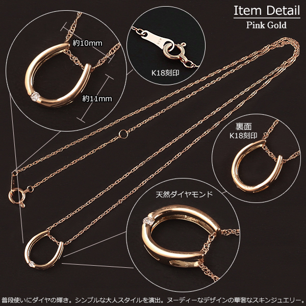 18金 ネックレス レディース K18 馬蹄 ホースシュー ダイヤモンド ペンダント ジュエリー 地金 ピンクゴールド 天然石 82174426 新品