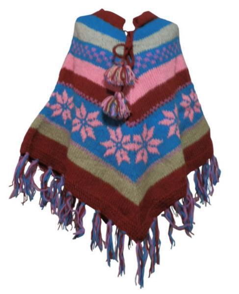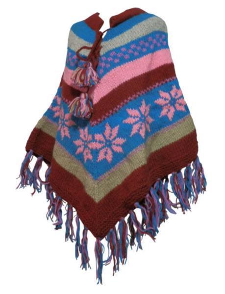 ■☆アジアン衣料 ネパール手編みフード付きポンチョ(WP-6)