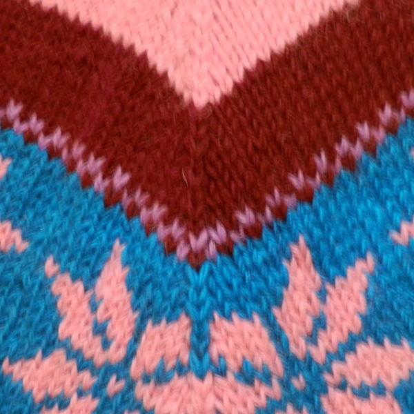 雪の結晶モチーフが編み込まれている