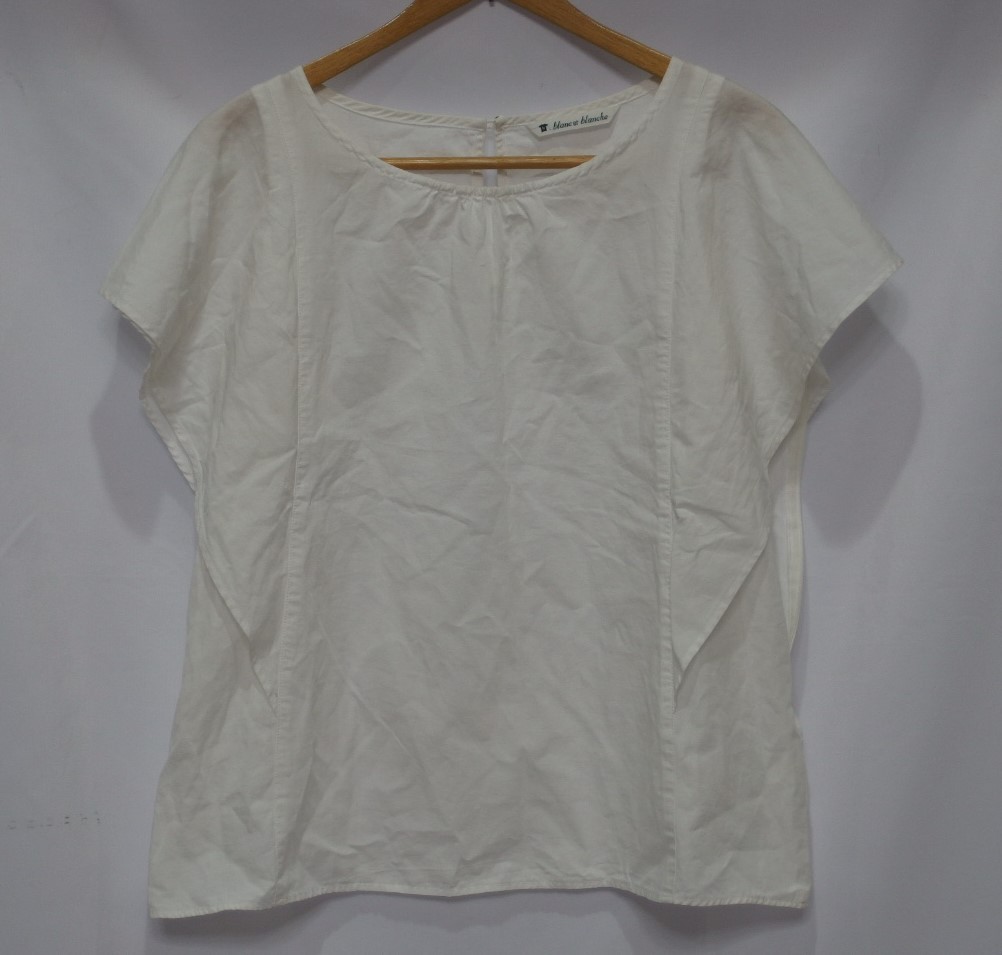 BLANC ET BLANCHE◆ラッフル袖 綿麻ブラウス(オフホワイト)マタニティ Mサイズ◆USED | |||