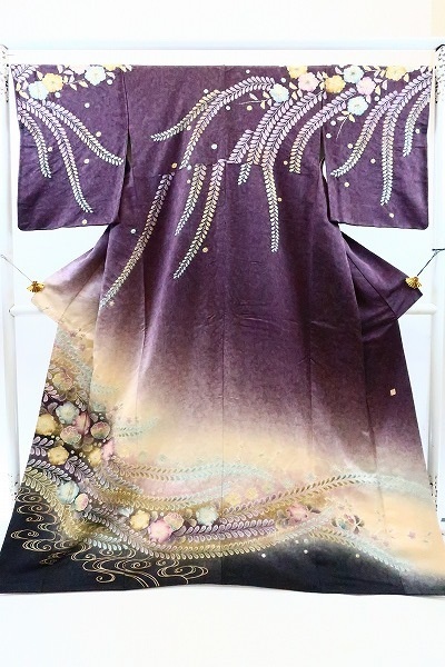 【着物フィ】訪問着/辻ヶ花/辻が花/身丈163cm/裄丈67cm/渋い紫/翠山工房/入学式/卒業式/正絹/仕立て上がり/m-3177 |