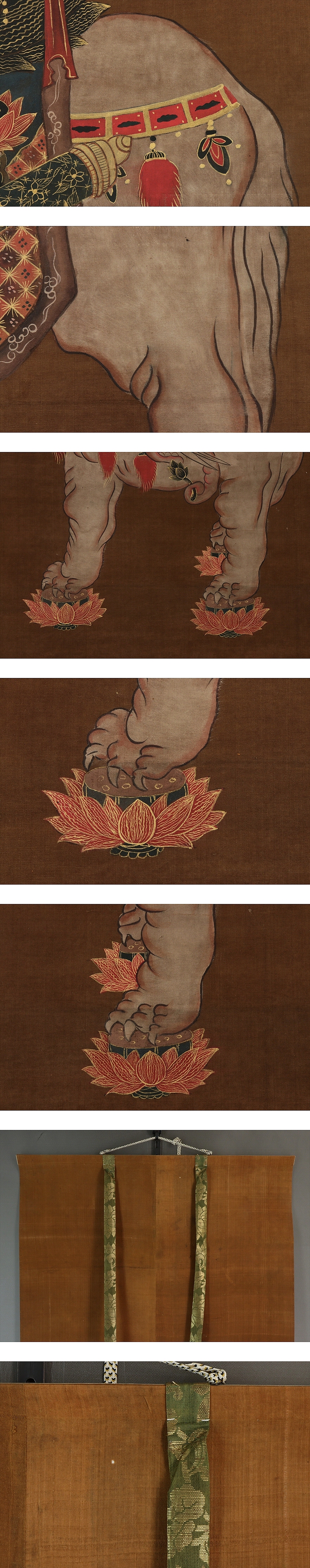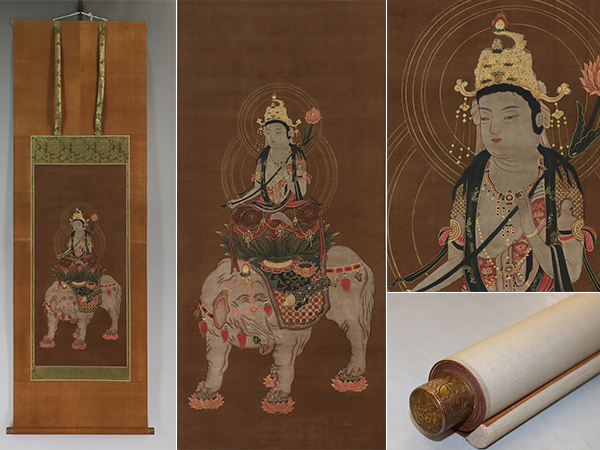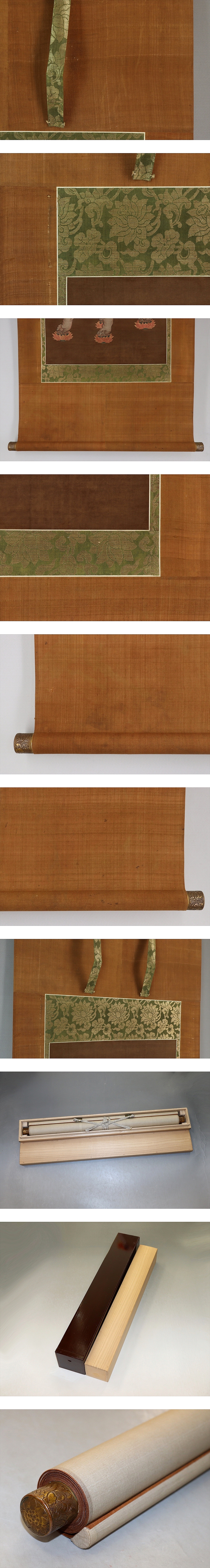 | №2203061【肉筆】古仏画【文殊菩薩】◆絹本◆合箱◆二重箱◆時代表具改装済◆掛軸 | |