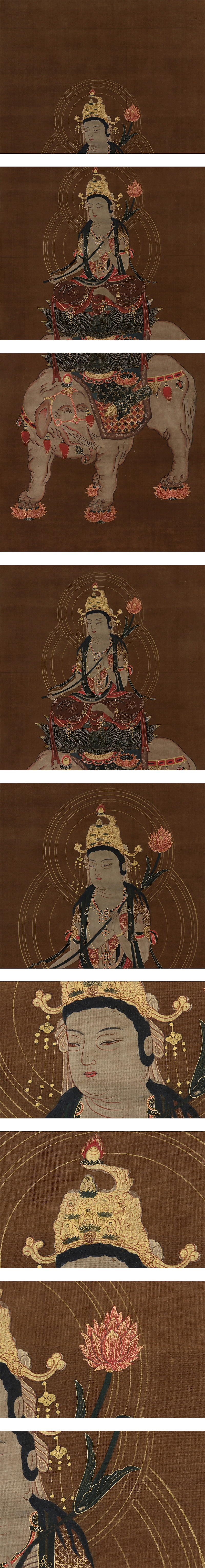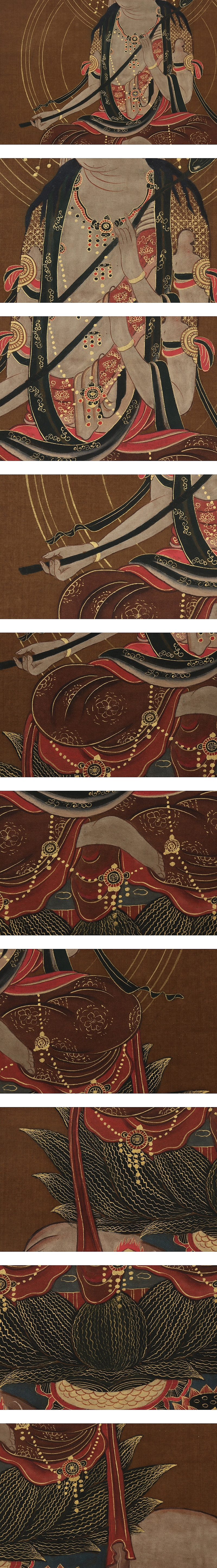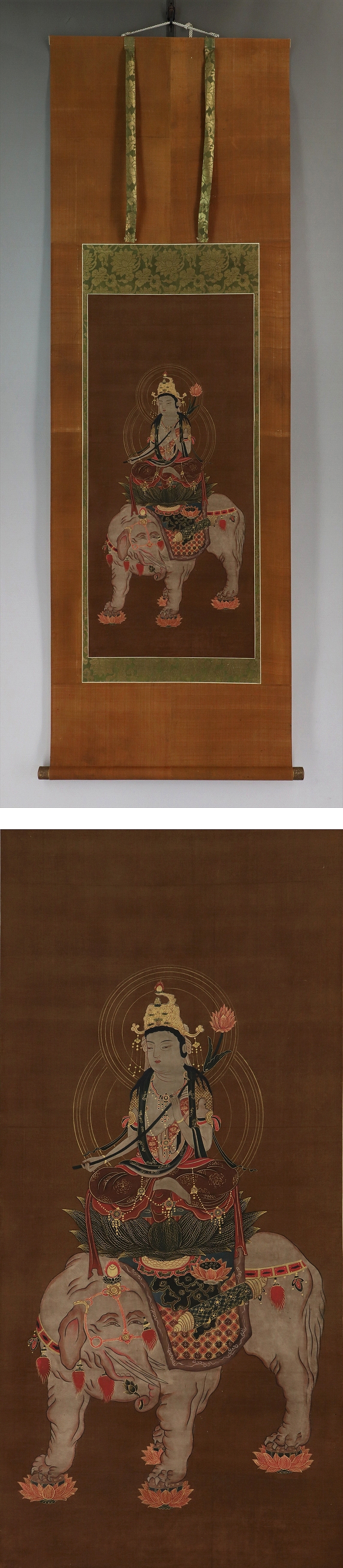 | №2203061【肉筆】古仏画【文殊菩薩】◆絹本◆合箱◆二重箱◆時代表具改装済◆掛軸 | |