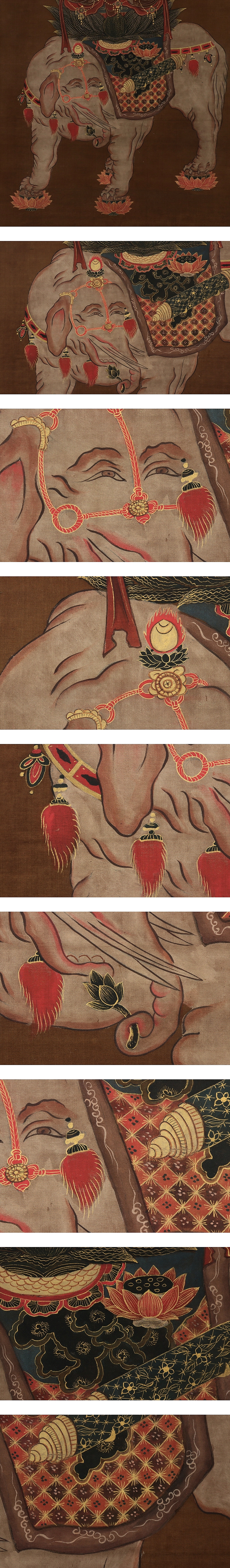 古仏画【文殊菩蕯】 本紙は、染み、焼けがあります。 表装は、染み、汚れ、皺、くすみ、小さい、虫食い、軸先変色があります。 【サイズ】 作品 横約37cm×縦約81cm 表装 横約53.5cm×縦約164cm |