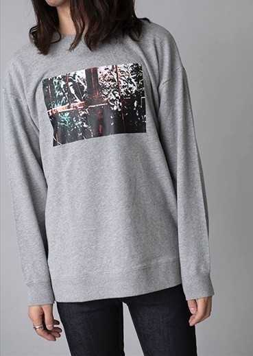 ブランドオリジナルのフォトグラフィックをプリントしたルーズスウェット