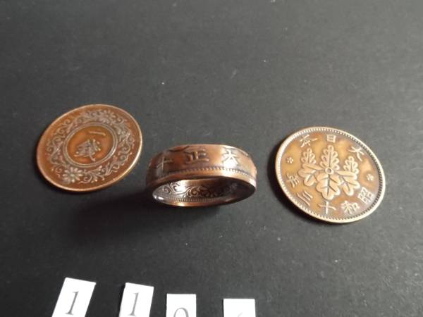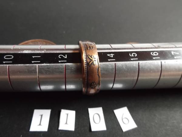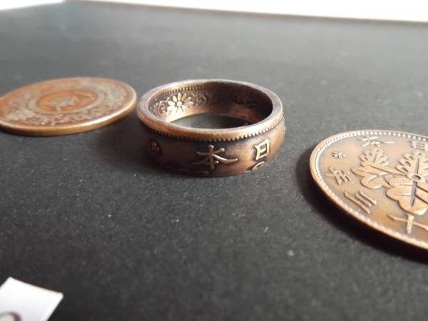 13号  コインリング  桐1銭青銅貨  ハンドメイド指輪 送料無料 (1106)菊紋 国旗 ステッカー シール 旭日