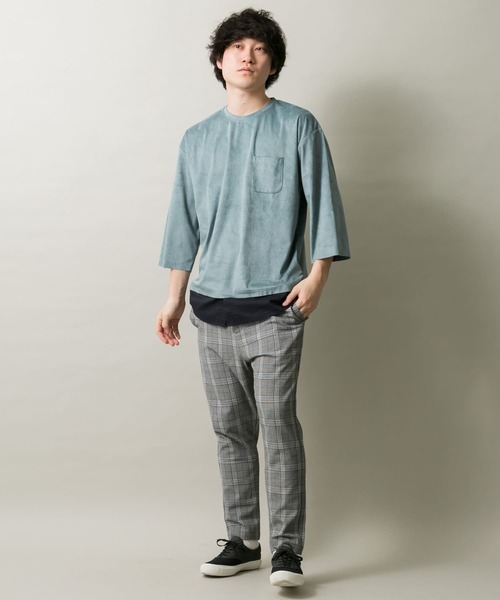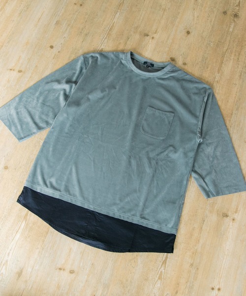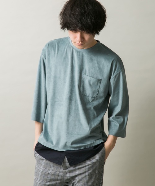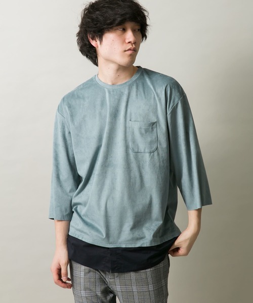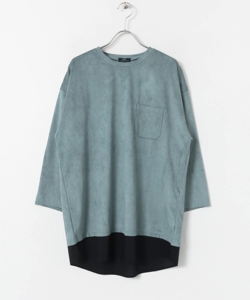 ITEMS URBAN RESEARCH フェイクスエード 裾切替7分Tシャツ グリーン38