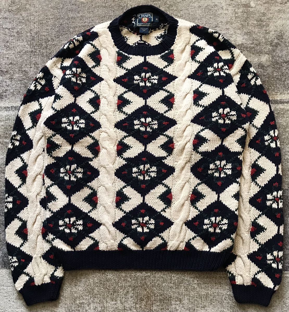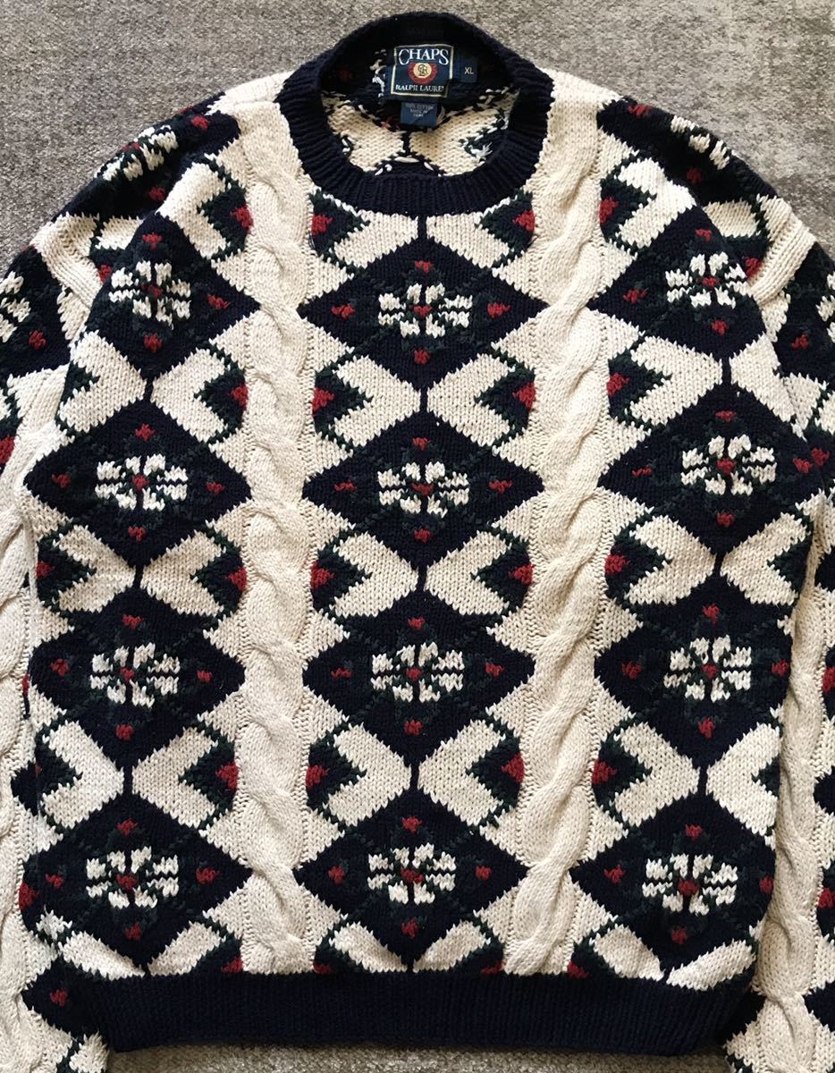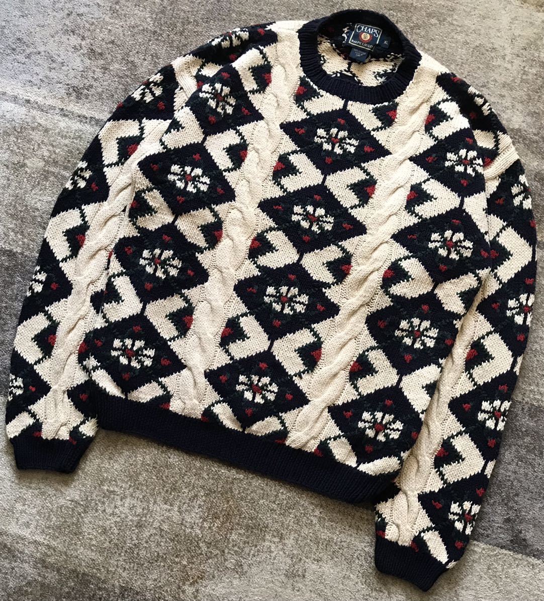 圧巻のデザイン ★ CHAPS RALPH LAUREN ★ チャップス ラルフローレン アーガイル柄 ケーブル編み ニットセーター XL です。