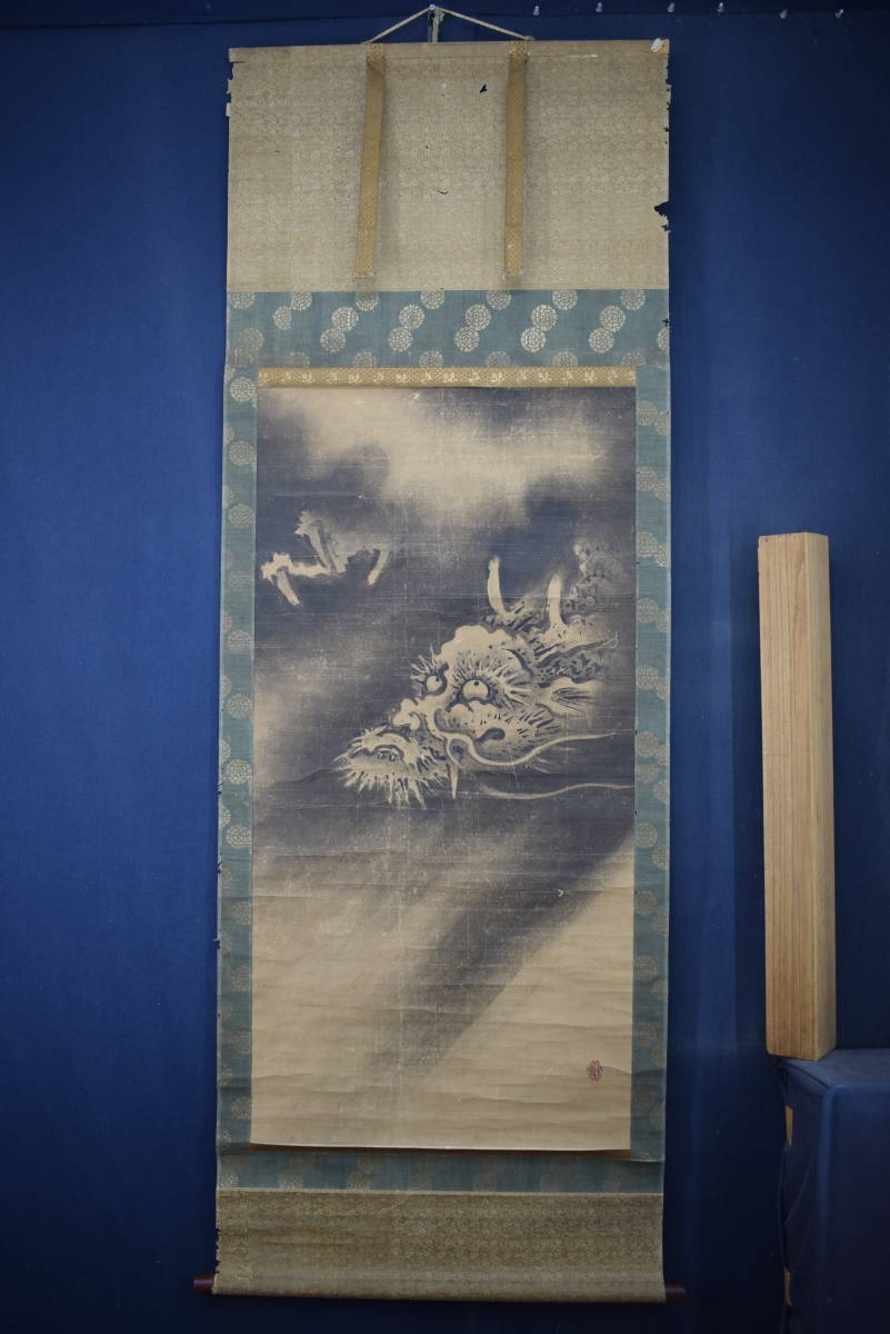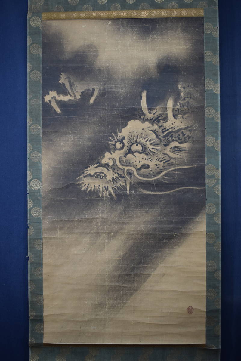 真作/狩野元俊秀信/雲龍之図/龍画/古画/江戸時代初期/掛軸☆宝船☆Y-757