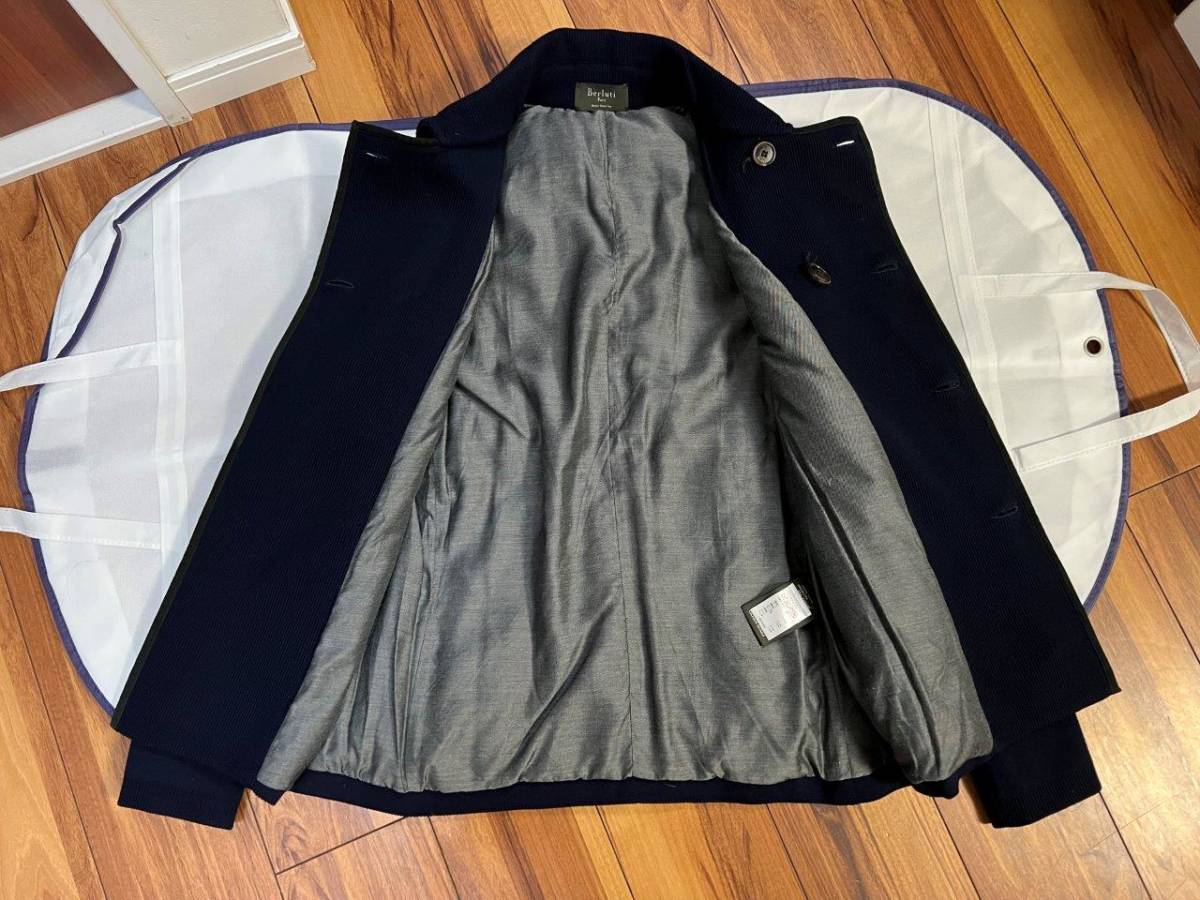 BERLUTI ベルルッティ 世界一エレガントな ダウン ナポレオン Pコート ジャケット 初期傑作 極上ウール×レザー 国内正規極美品 定価70万円