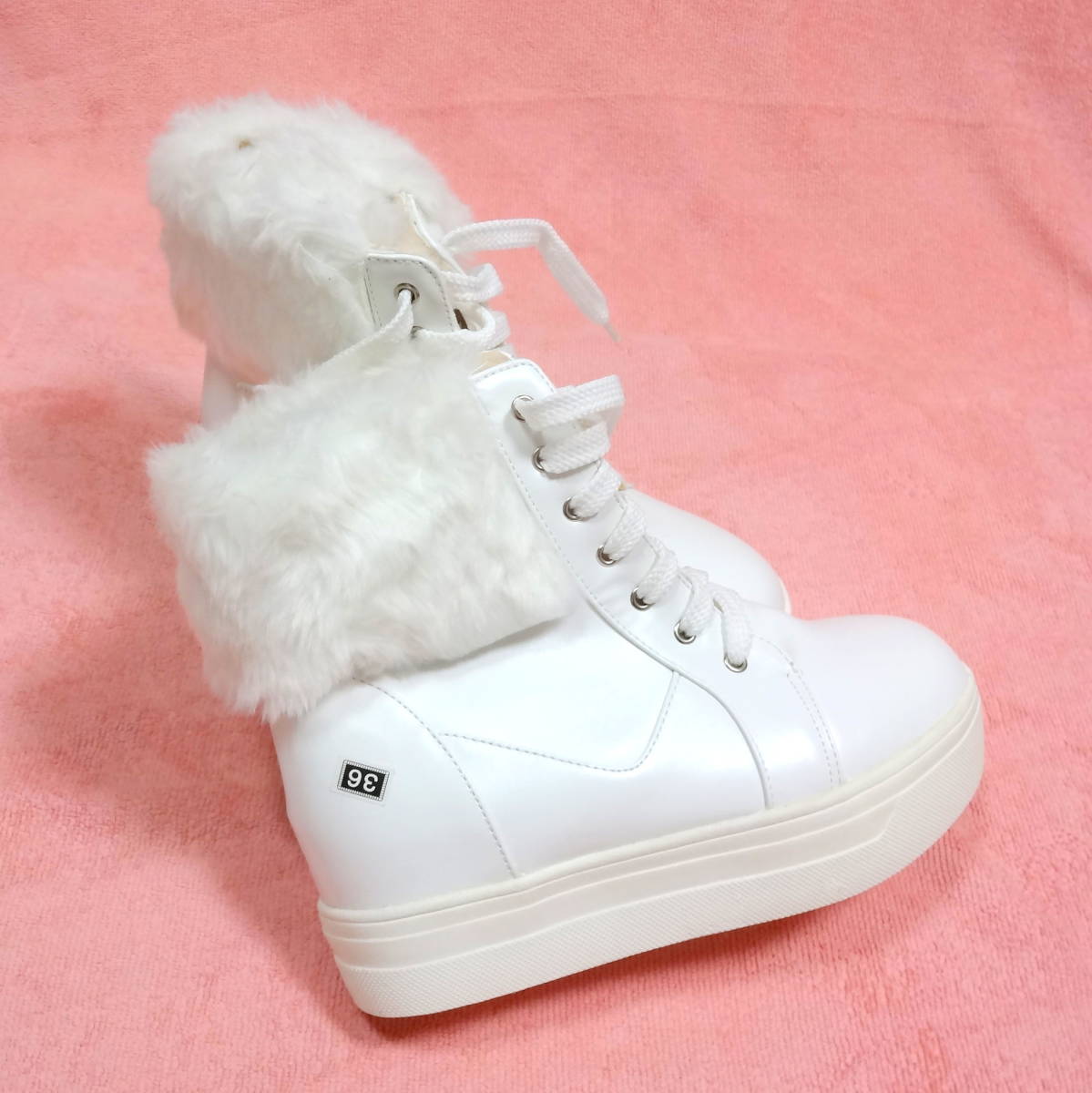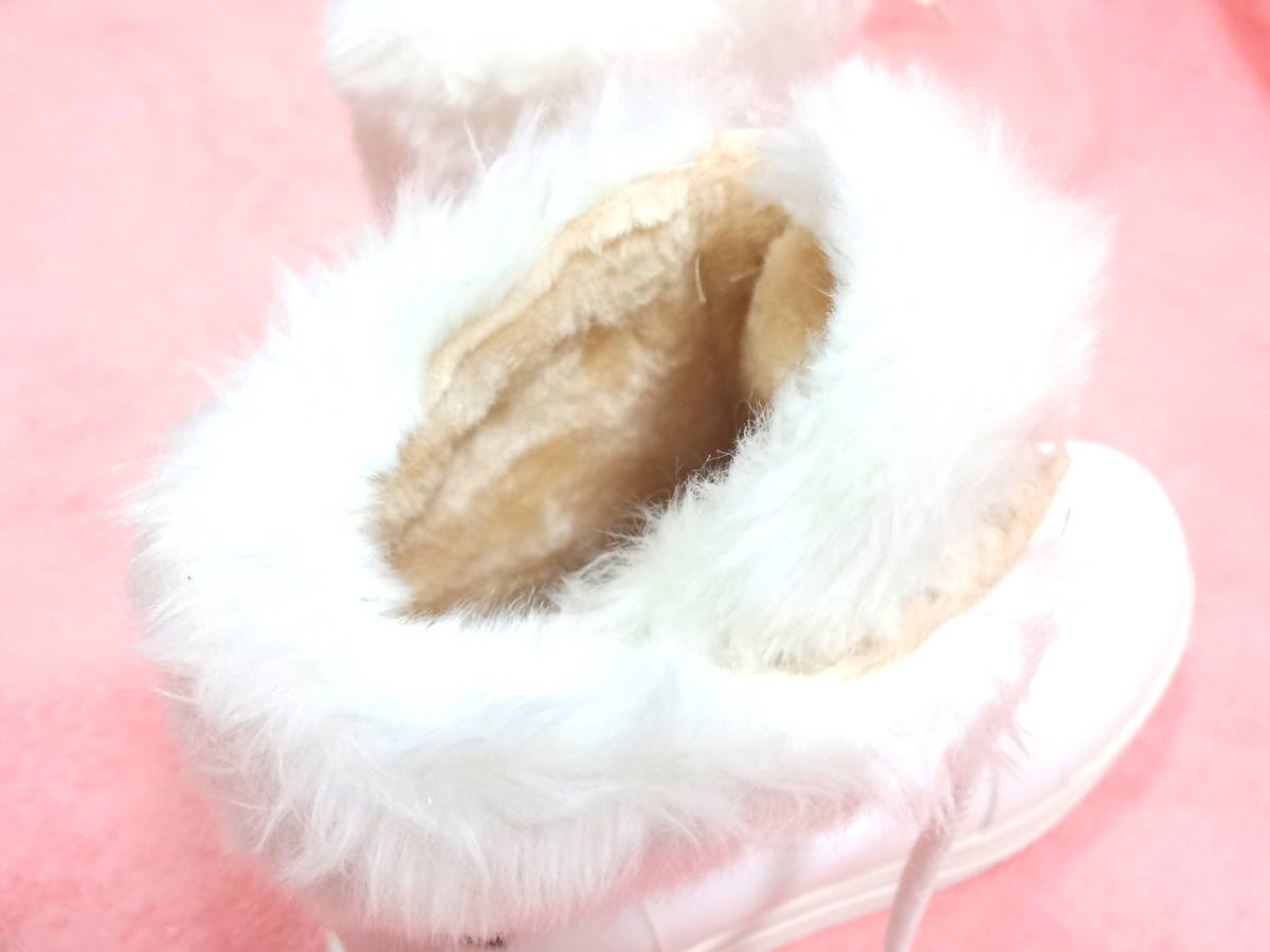 ファーブーツ23cm ハイカット 白 可愛い 冬 韓国 値下げ処分 長期保管 激安