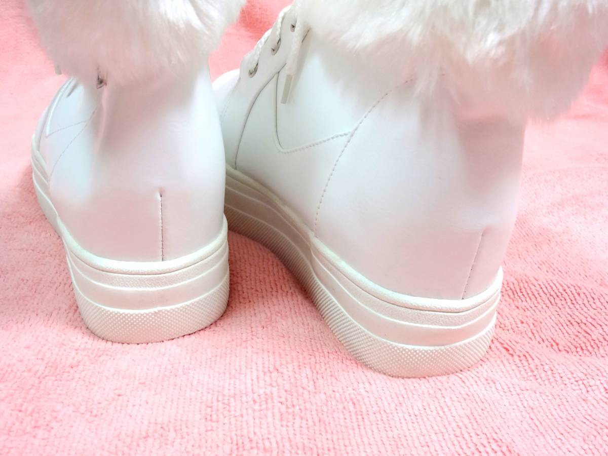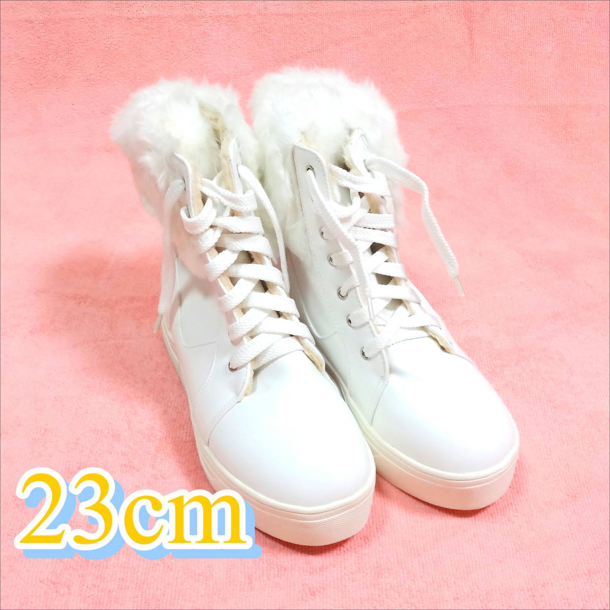 ファーブーツ23cm ハイカット 白 可愛い 冬 韓国ファッション 長期保管値下げ処分 激安