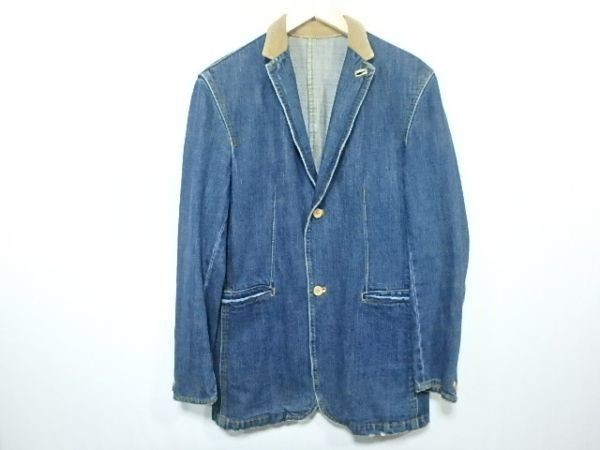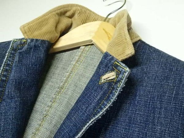 紺 綿100% しっかりした生地 ビンテージ加工 縦落ち コーデュロイえり