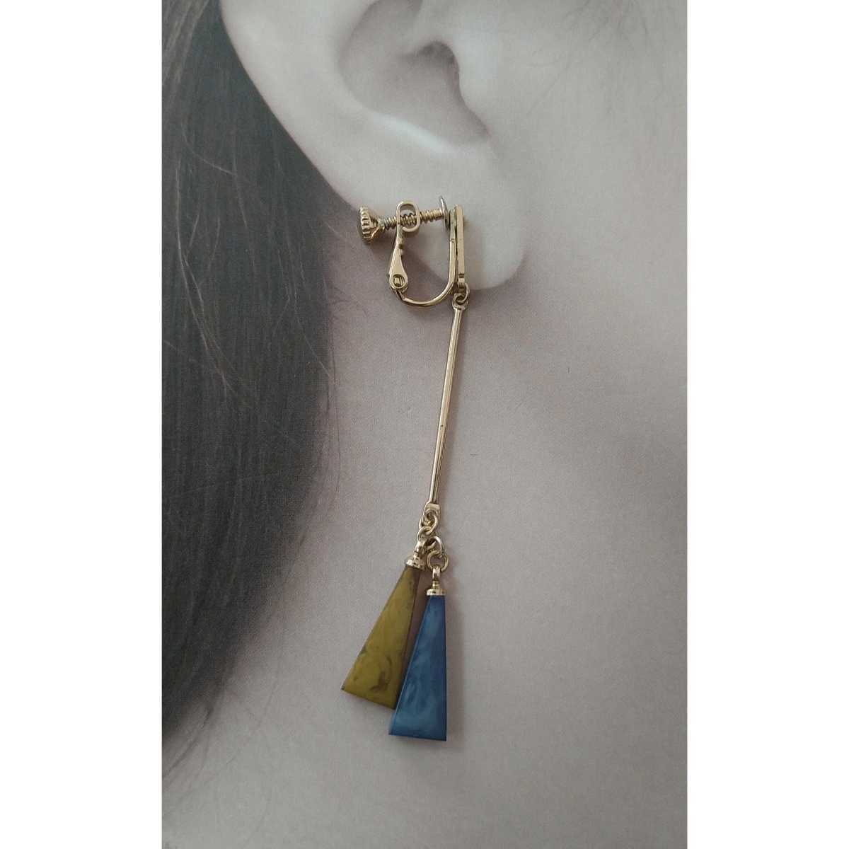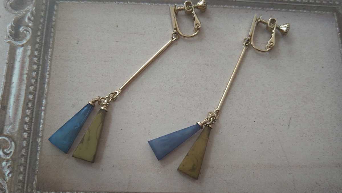 青&うぐいす色×ゴールドカラーバー・のイヤリングです