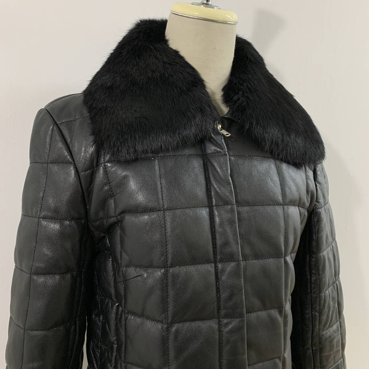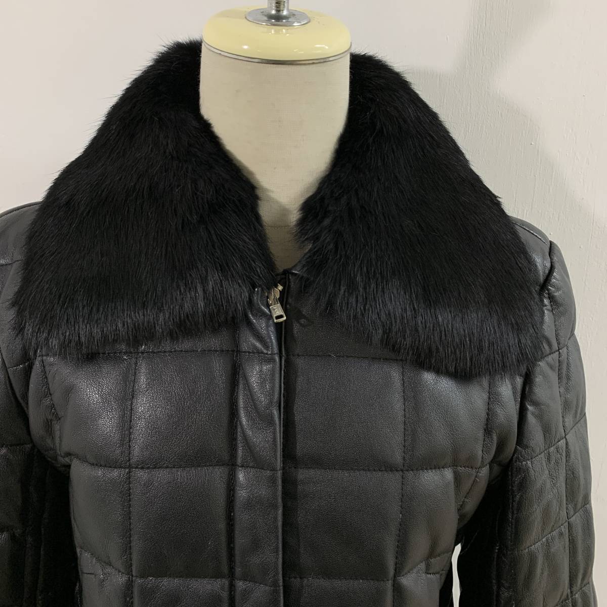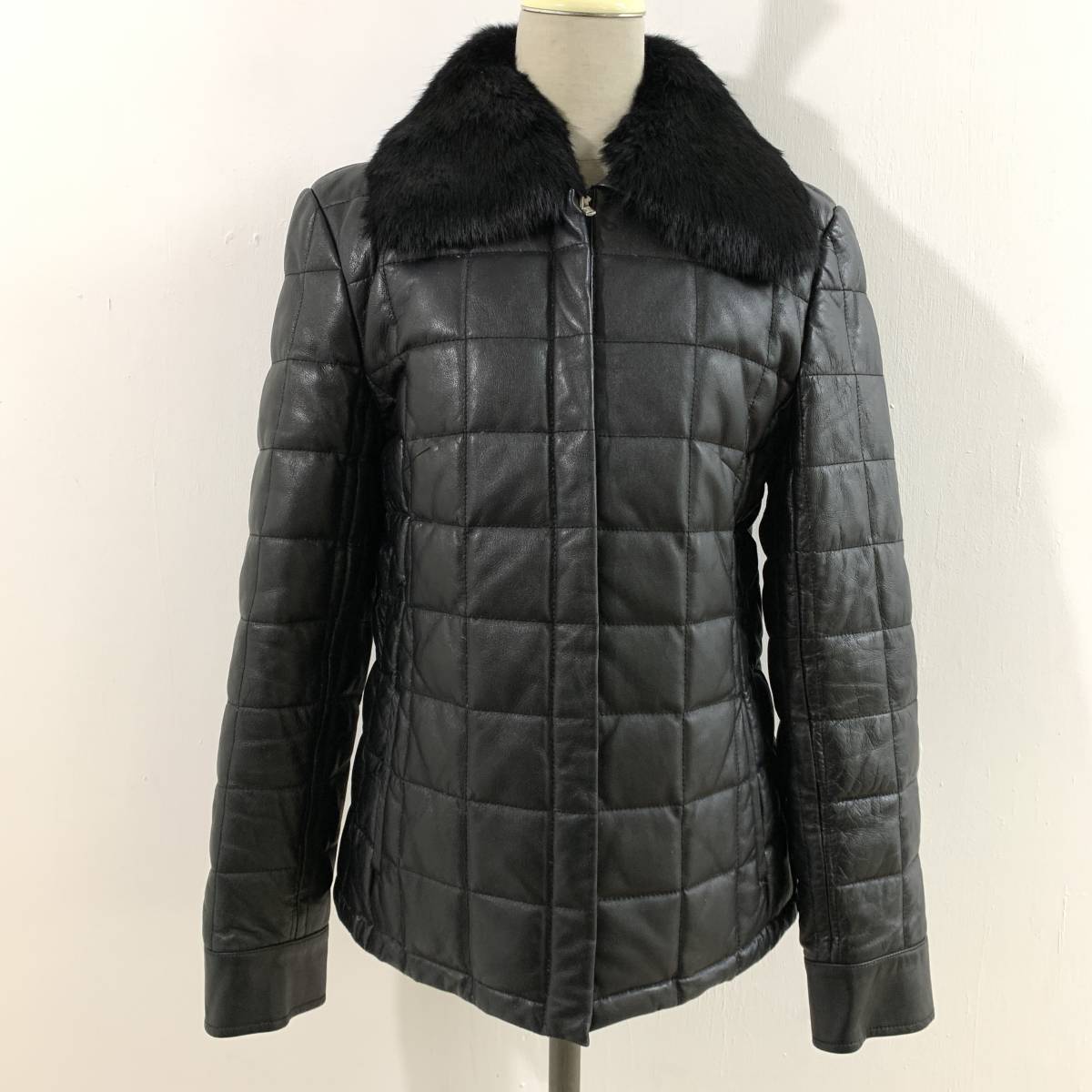 ☆上質 MAKELET メイクレット 羊革 ラビットファー ファー付き レザーダウンジャケット サイズ9AR ブラック 黒 古着【送料一律/同梱可能】1