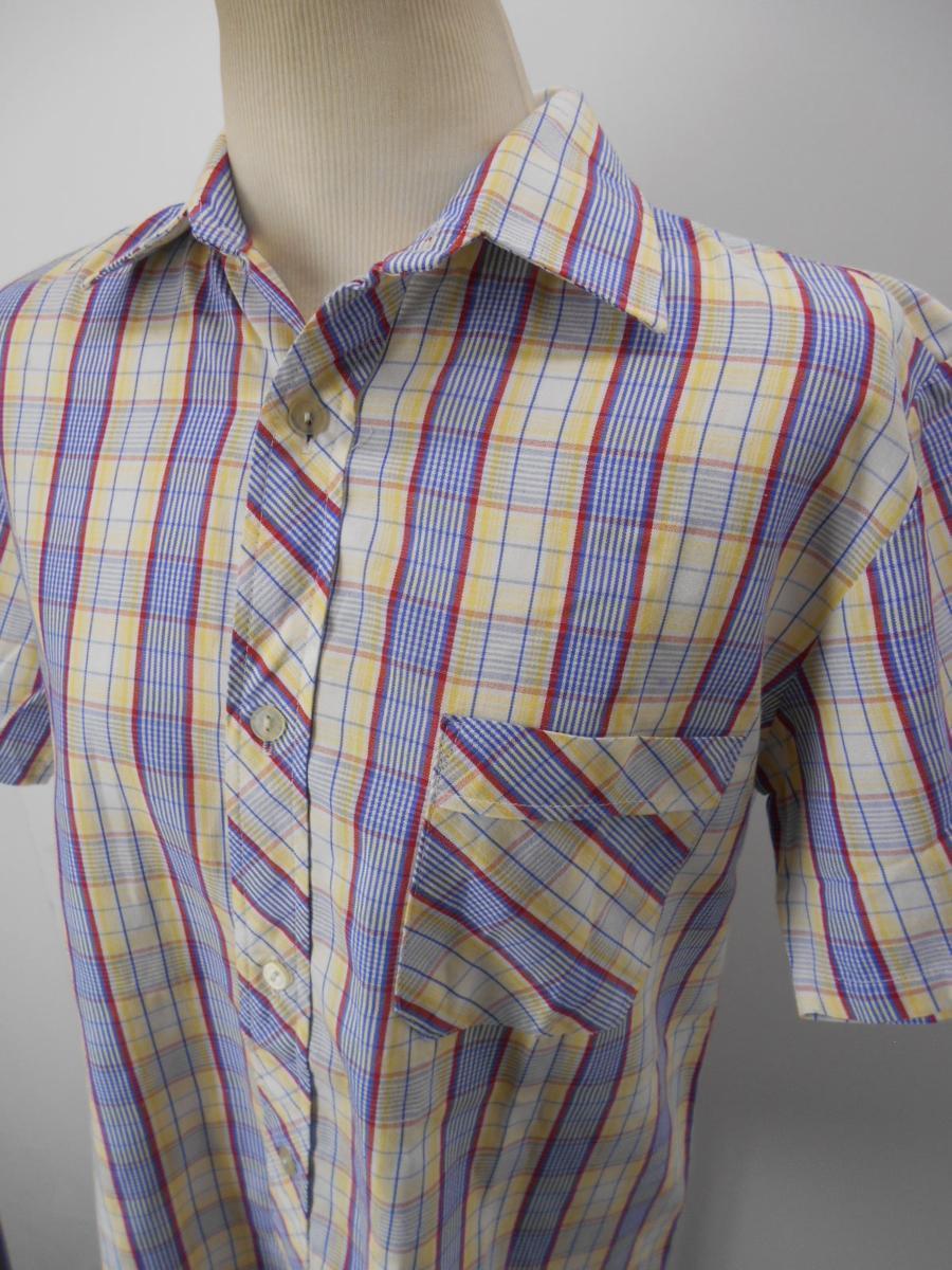 半袖 チェック シャツ メンズ S 柄シャツ ヨーロッパ 古着 d392