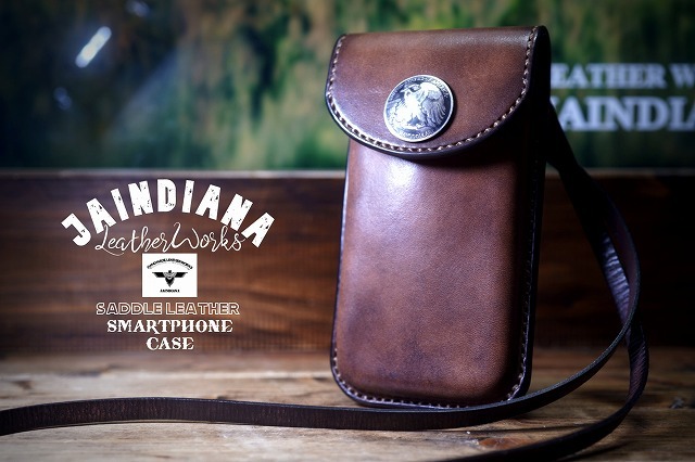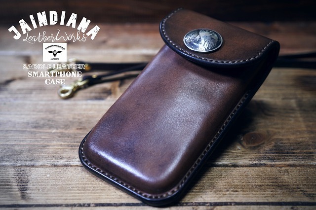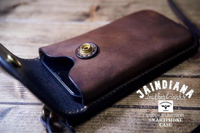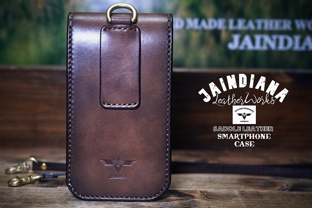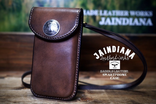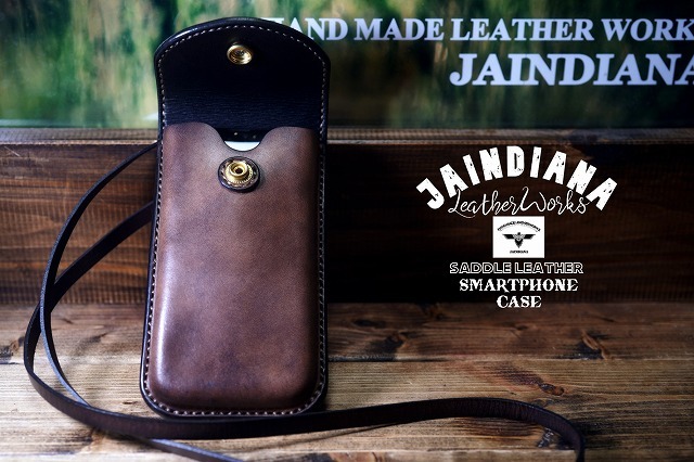 | ハンドメイド サドルレザー 2way スマートフォンケース ビンテージ染めブラウン | ||||