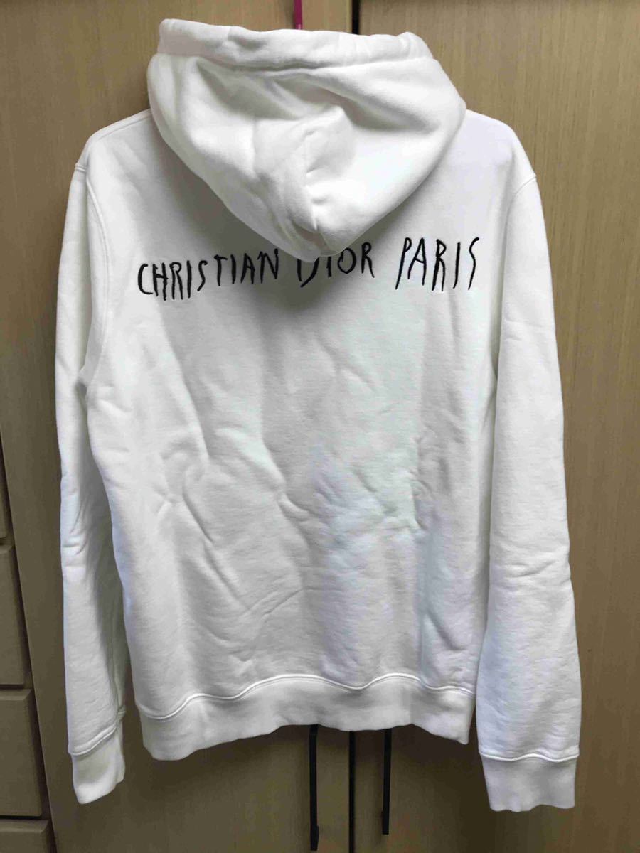 正規 限定 19AW DIOR × Raymond Pettibon ディオール レイモンド ペティボン KIM JONES キムジョーンズ コラボ エンブロイダリー ロゴ プルオーバー フーディー パーカー 白 S