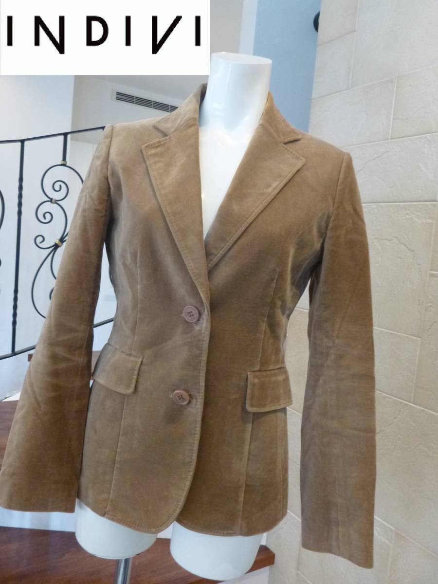 3万 美品 INDIVI インディヴィ インディビ ★ 茶 ベロア ジャケット 36 S相当