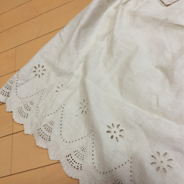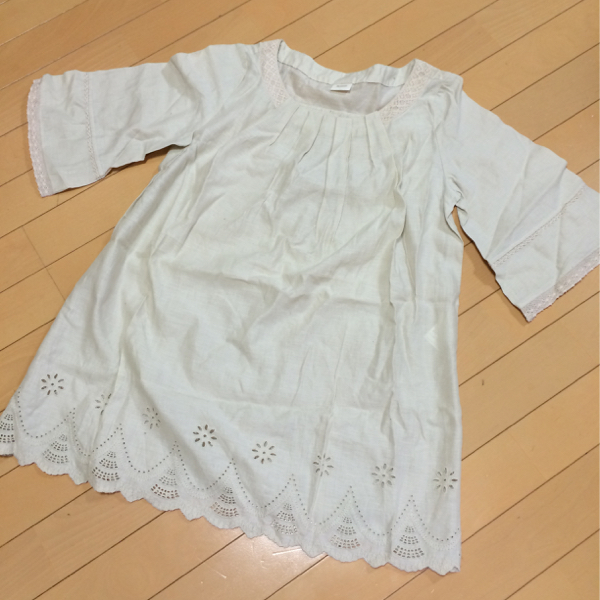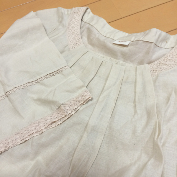 ◆フレアー袖にカギ編みレースやスカラップレースが可愛いチュニックブラウス♪ふんわりAライン♪リネン混の綿麻素材もナチュラル可愛い