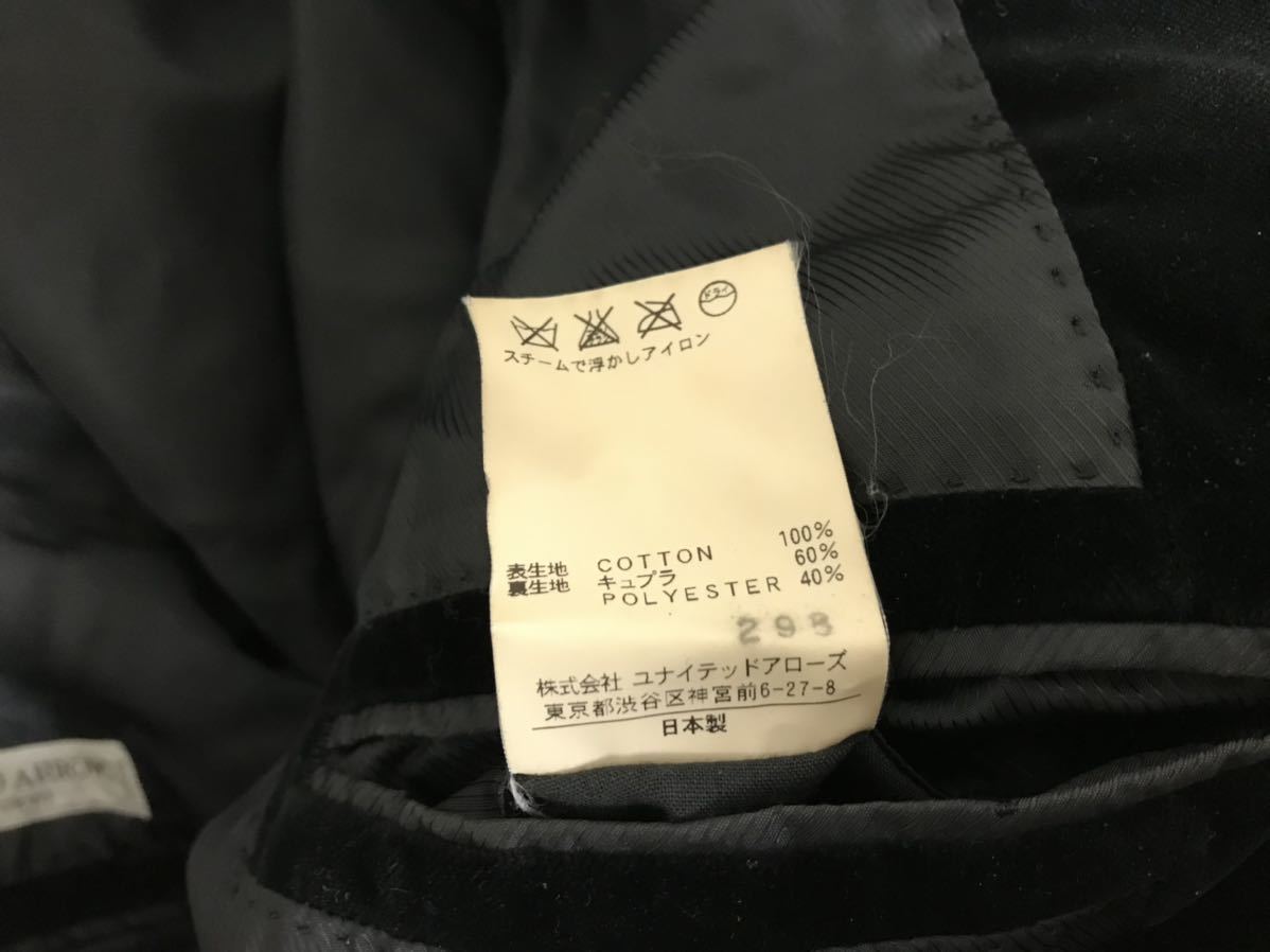 商品名:本物ユナイテッドアローズUNITEDARROWS TOKYOコットンベロアテーラードジャケットスーツビジネス黒ブラックメンズ46M日本製
