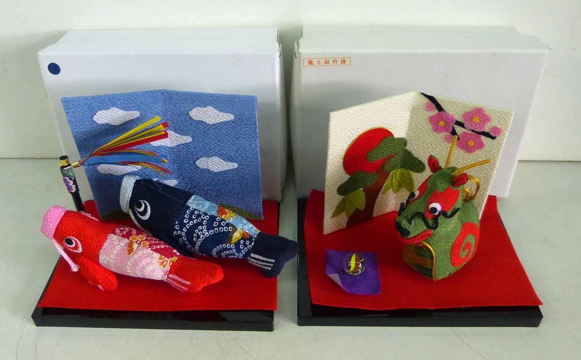 ☆ちりめん細工 季節飾り【五節句 こいのぼり/龍と松竹梅】台座/箱付き 2点セット USED品☆ | |