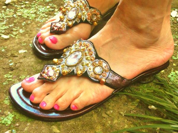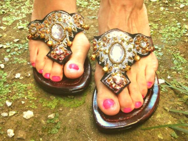 キラキラビーズと鈴が足もとを華やかにしてくれます。