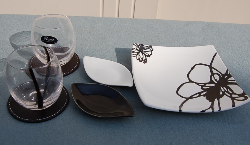 美濃焼 益見窯  Refine:ラウンジセット ロックグラス コースター スクエアプレート 葉型小皿