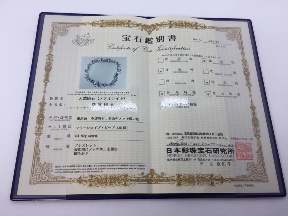 新品の一点ものの、メテオライト【ギベオン、天然隕石】のブレスレットです。