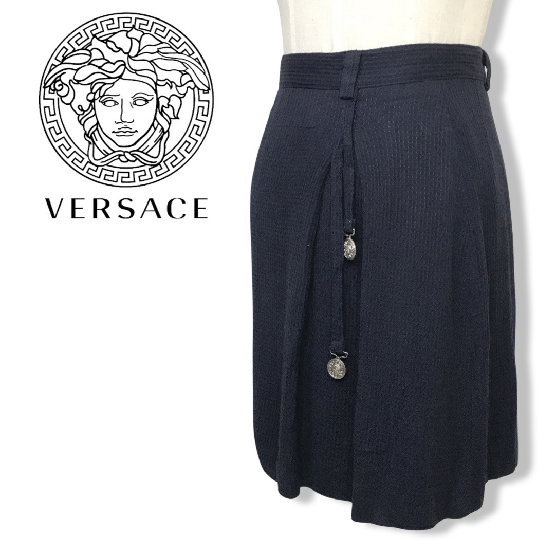 ★VERSACE JEANS COUTURE ヴェルサーチ★レーヨン リネン スカート ネイビー ボトムス size 28/42 管:C:02