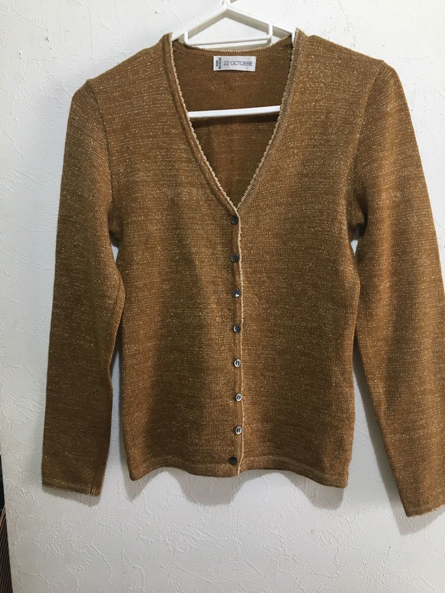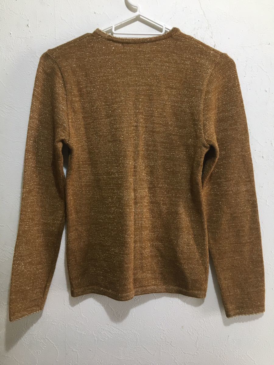 お色はカラシ色、金糸でラメになっているオシャレなカーディガンです。