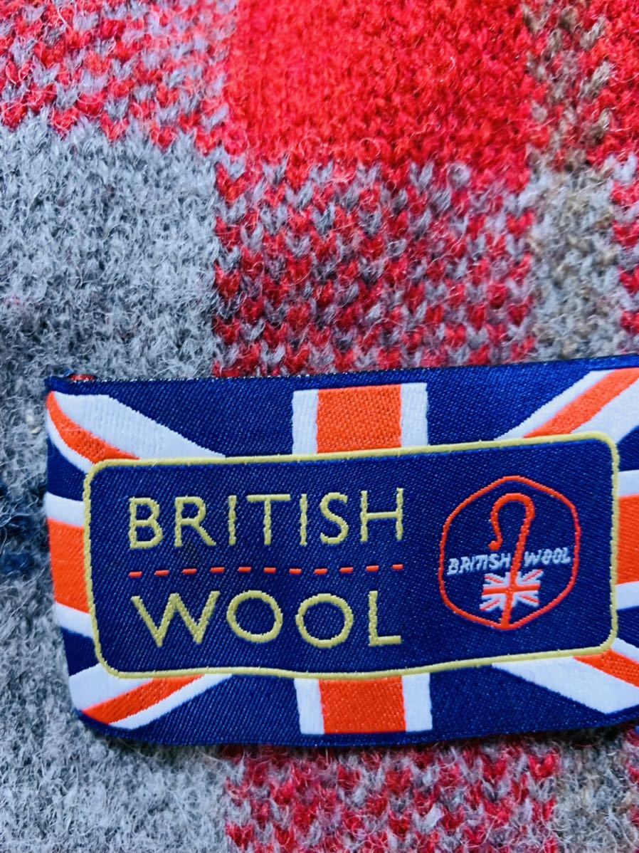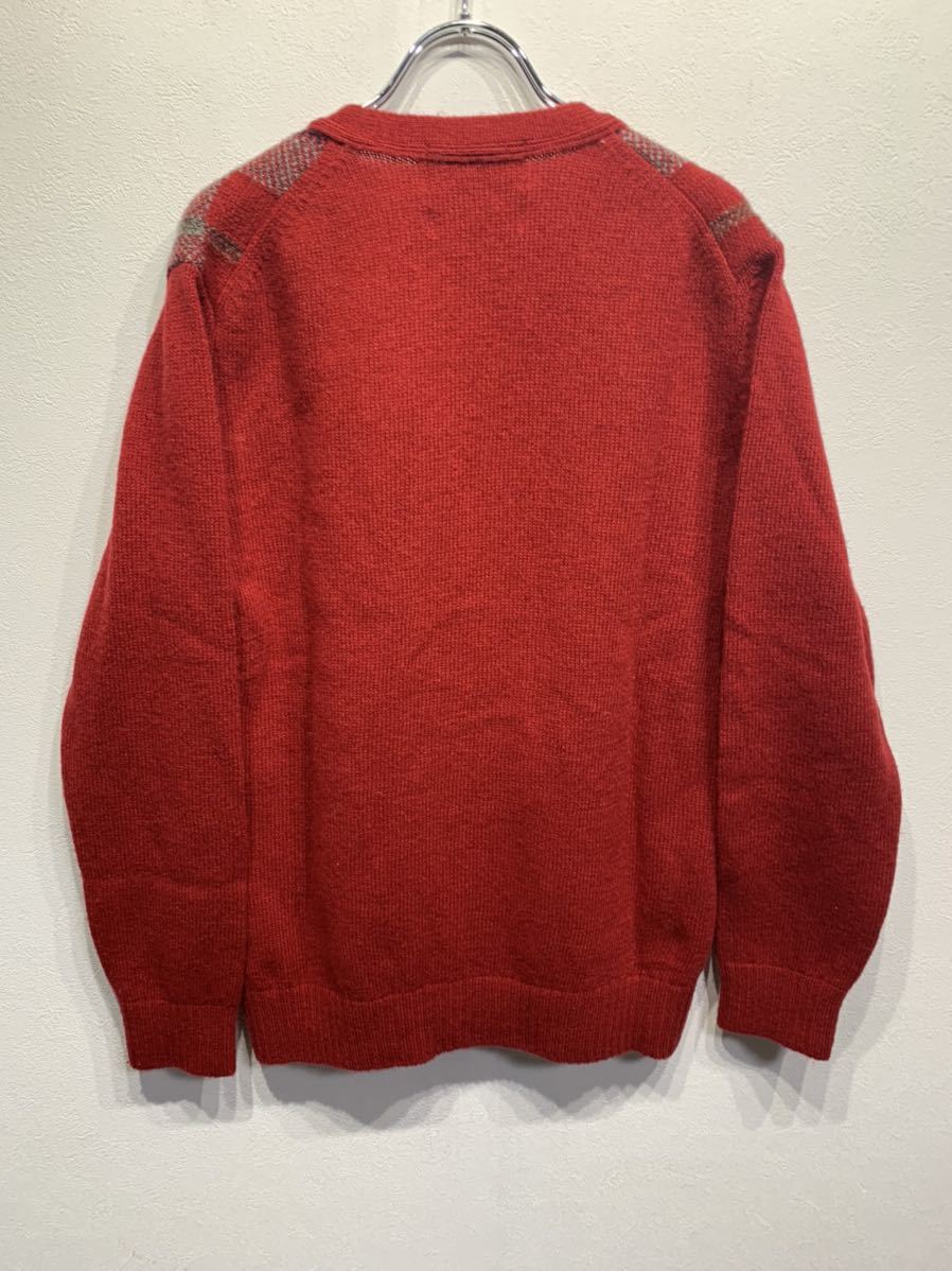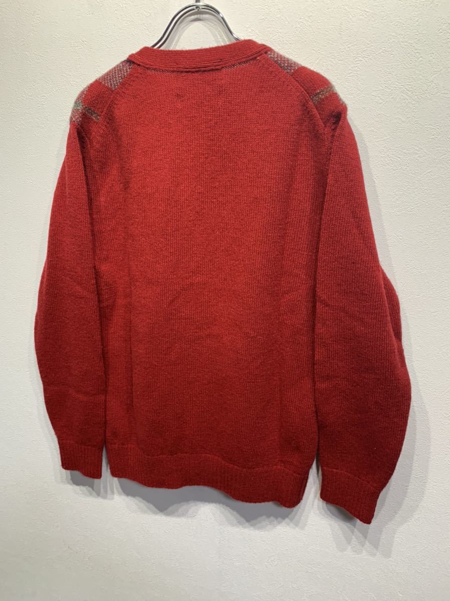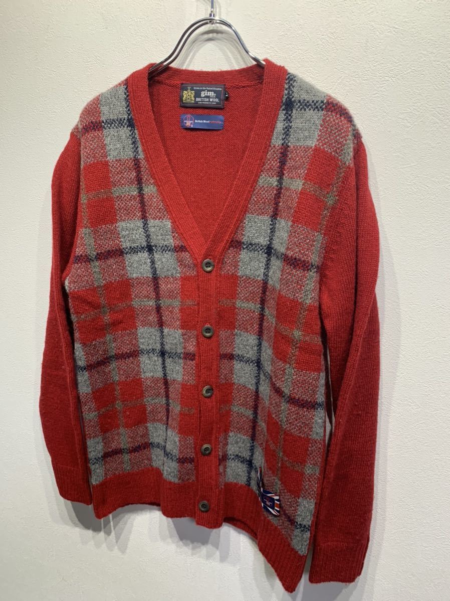 人気のgim BRITISH WOOL ニット  メンズLサイズ 赤/レッド  ウール チェック  灰/グレーメンズ カジュアル 上質 日本製   K1611