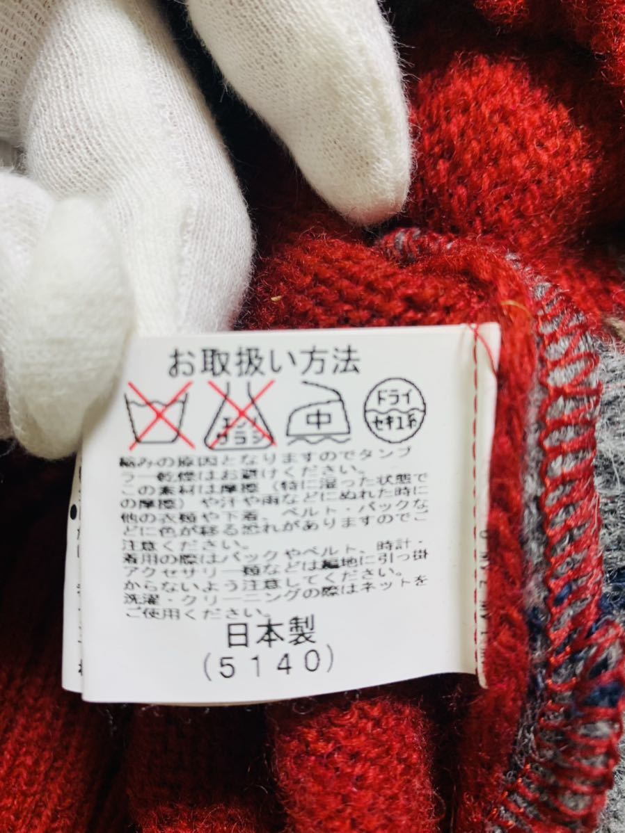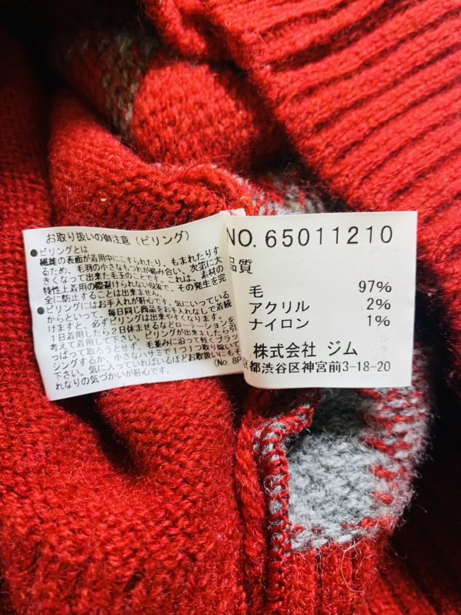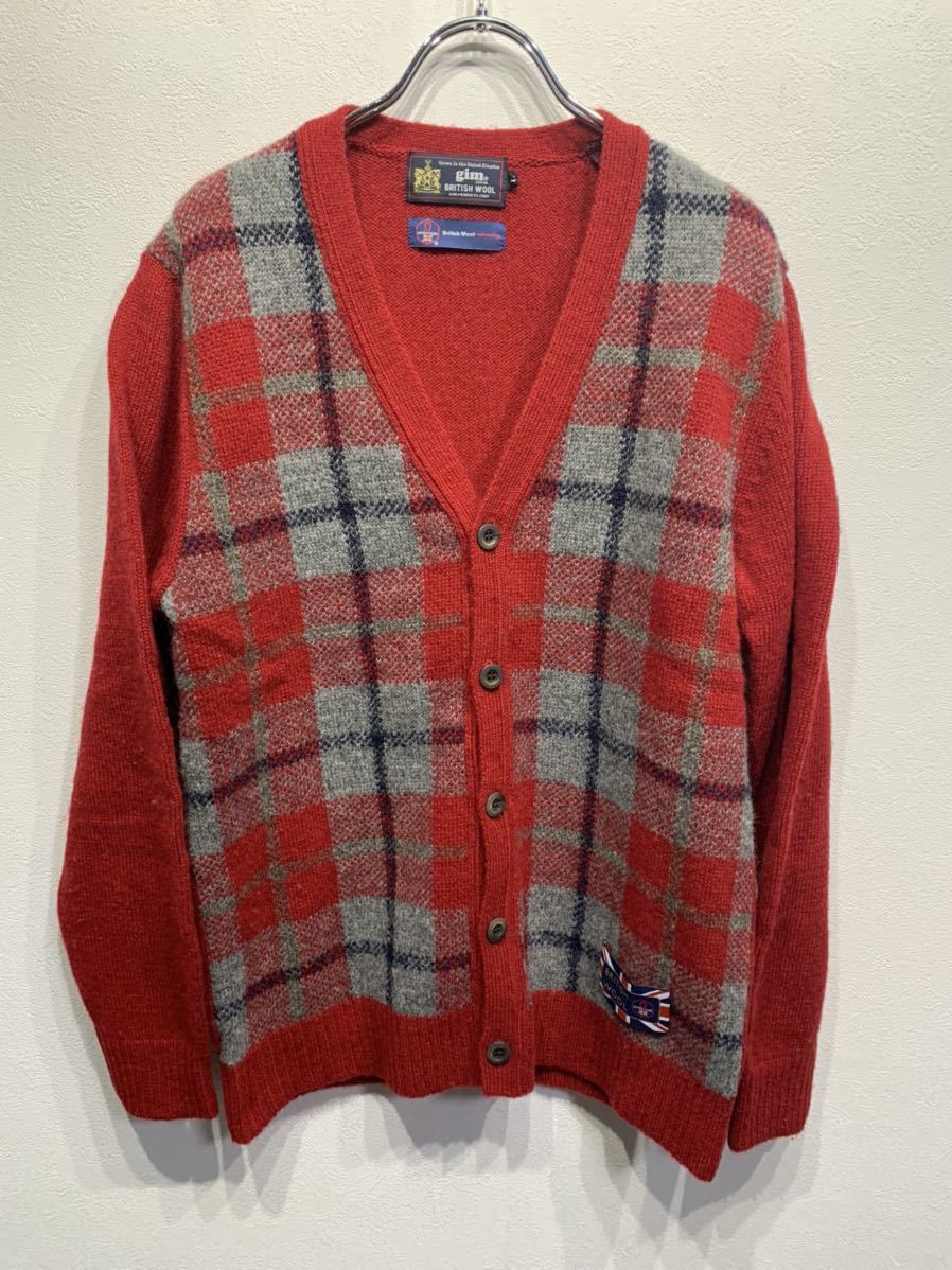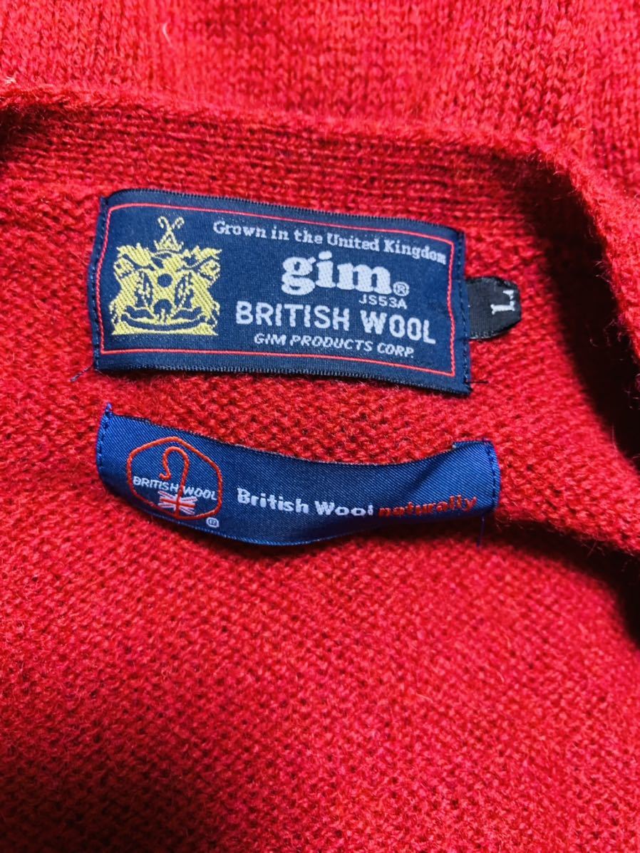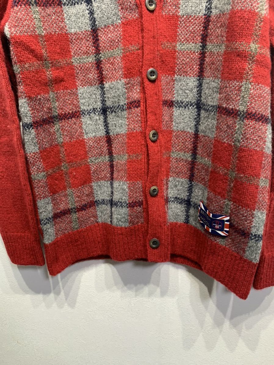 【人気】gim BRITISH WOOL ニット  メンズLサイズ 赤/レッド  ウール チェック  灰/グレーメンズ カジュアル 上質 日本製K1611