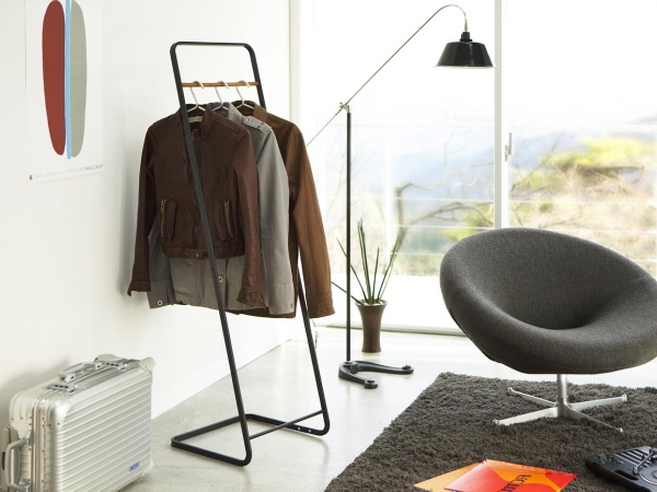 | スチールのボディがモダンな印象のコンパクトコートハンガー。 圧迫感が少ないデザインでコートやシャツをさっとかけられる便利なアイテムです。 コートなどをかけるハンガー部分は天然木を使用した高級感のある作りになっています。 |
