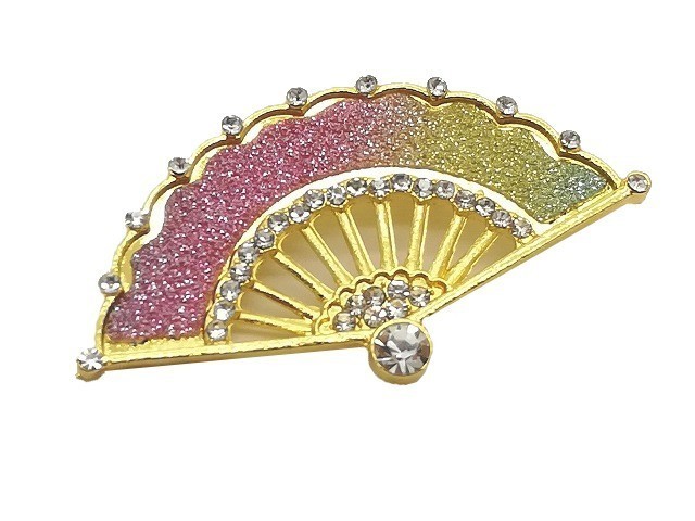 送料無料【新品】アクセサリー ブローチ 扇 ①★扇子 胸飾り バッジ ラインストーン ブライダル パーティー 発表会 結婚式 卒業式 成人式