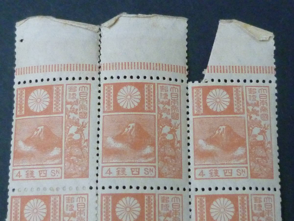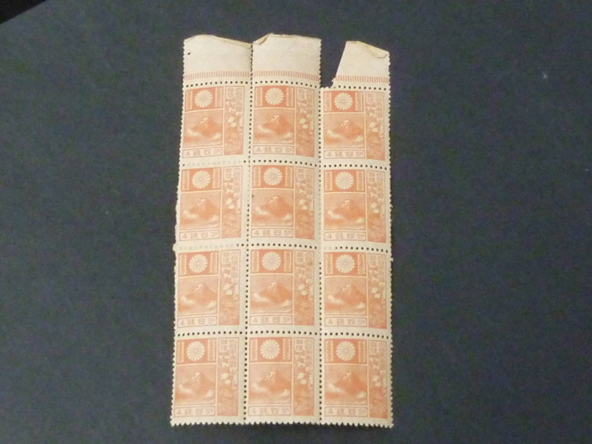 22 S №H 日本切手 1930年 #156 新版改色富士鹿 4銭 12枚ブロック 未使用・NH. 裏面間紙付着有