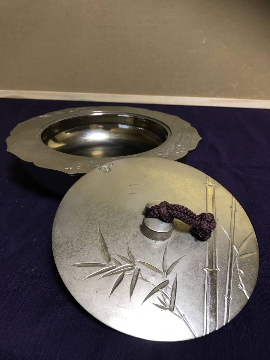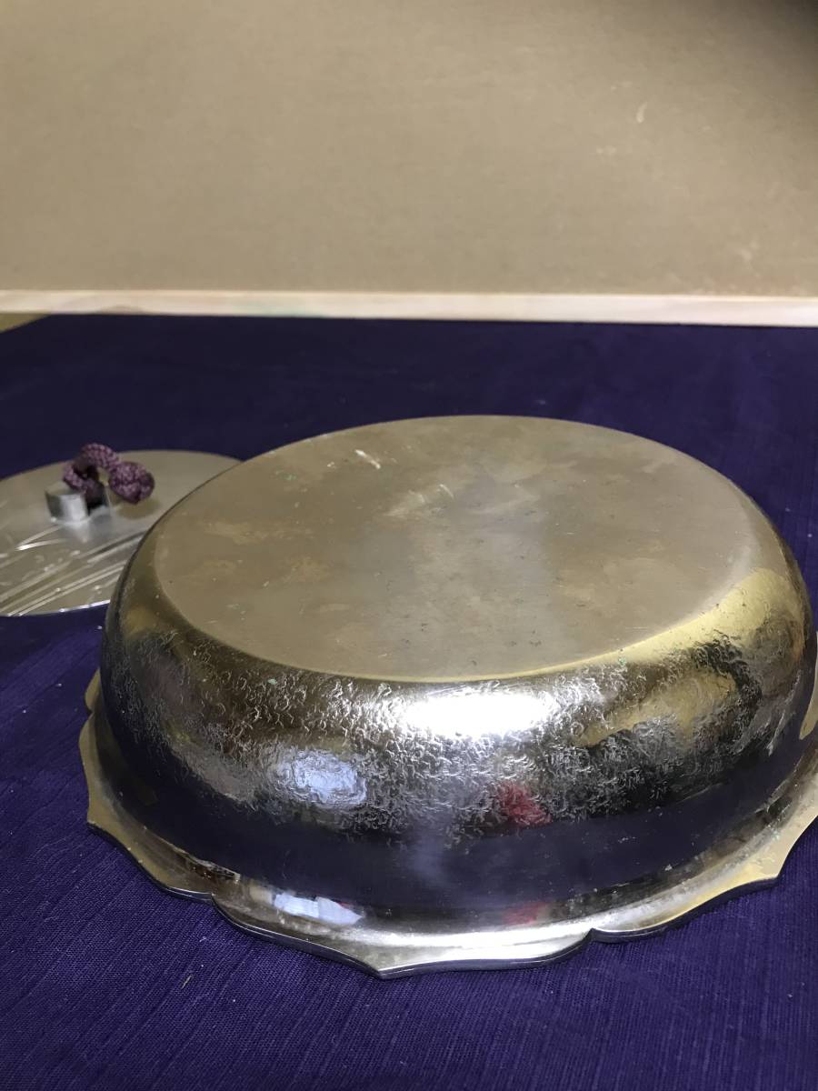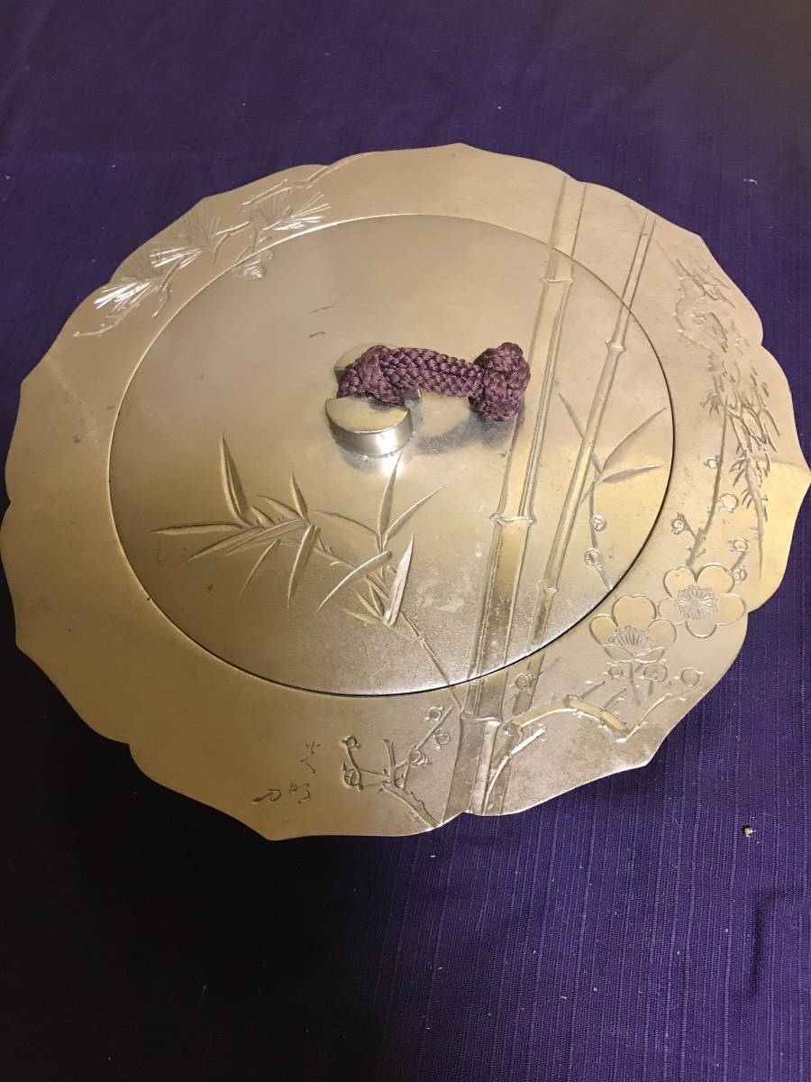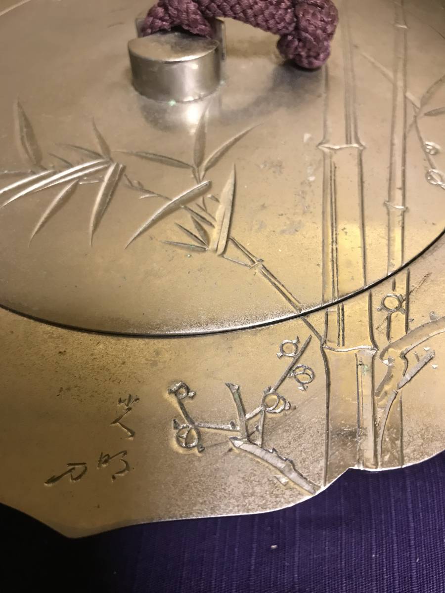 金属製 細密彫刻 蓋物 小物入れ 家紋 アンティーク