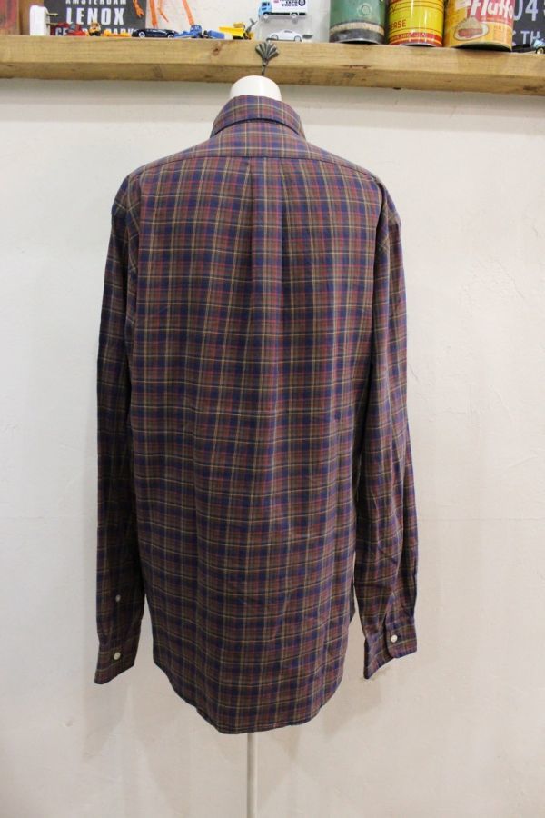 N11★RALPH LAUREN/ラルフローレン ポニー刺繍チェックボタンダウン長袖シャツ ブラウン Sサイズ 男女兼用 古着 USED ★