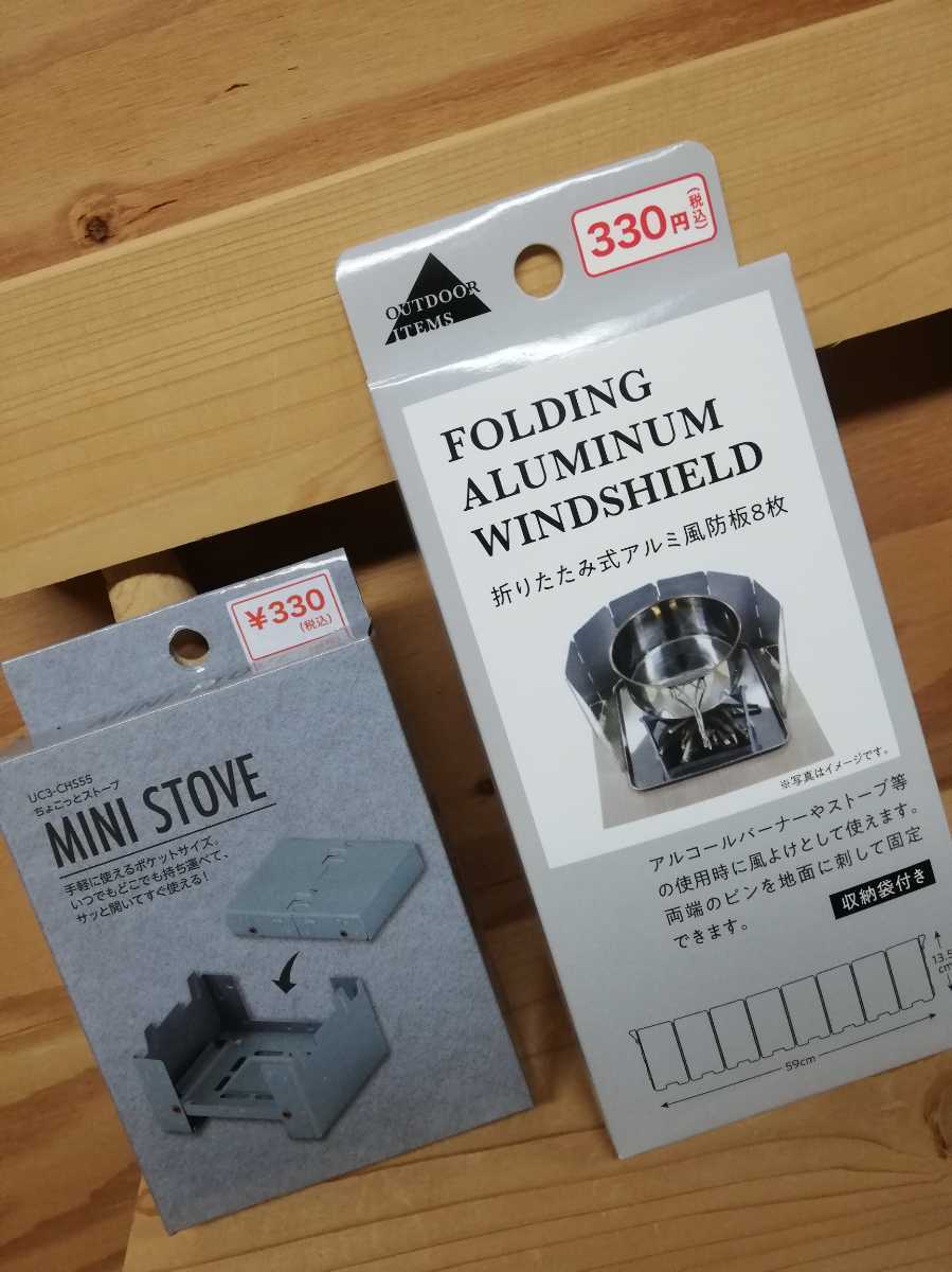 ★★★送料無料★折りたたみ式アルミ風防板★防風板★ミニストーブ★2点セット★ソロキャンプ★アウトドアグッズ★キャンドゥ★