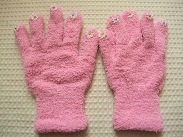 即決 新品 のびのび モコモコ手袋 女性用 ピンク 1ペア 送料140円