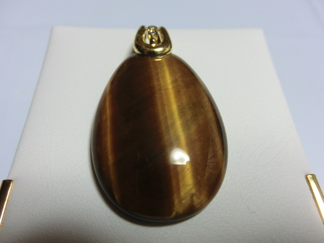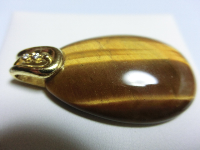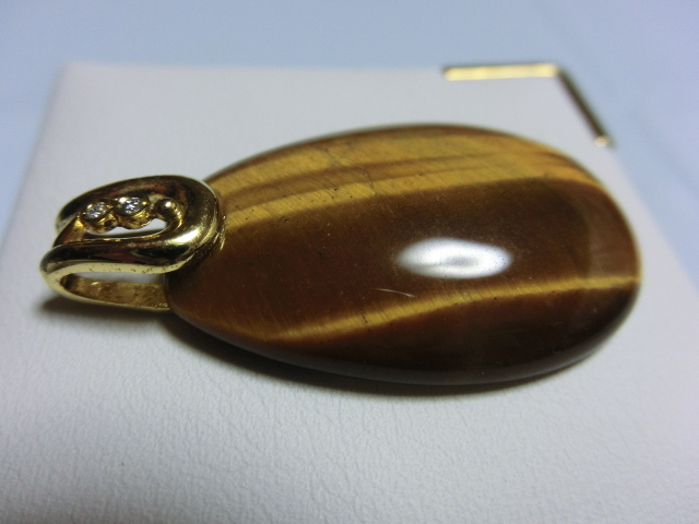 ■美品:タイガーアイ★ダイヤ付きトップ刻印silver.0.02    Tm732