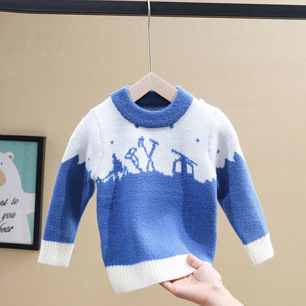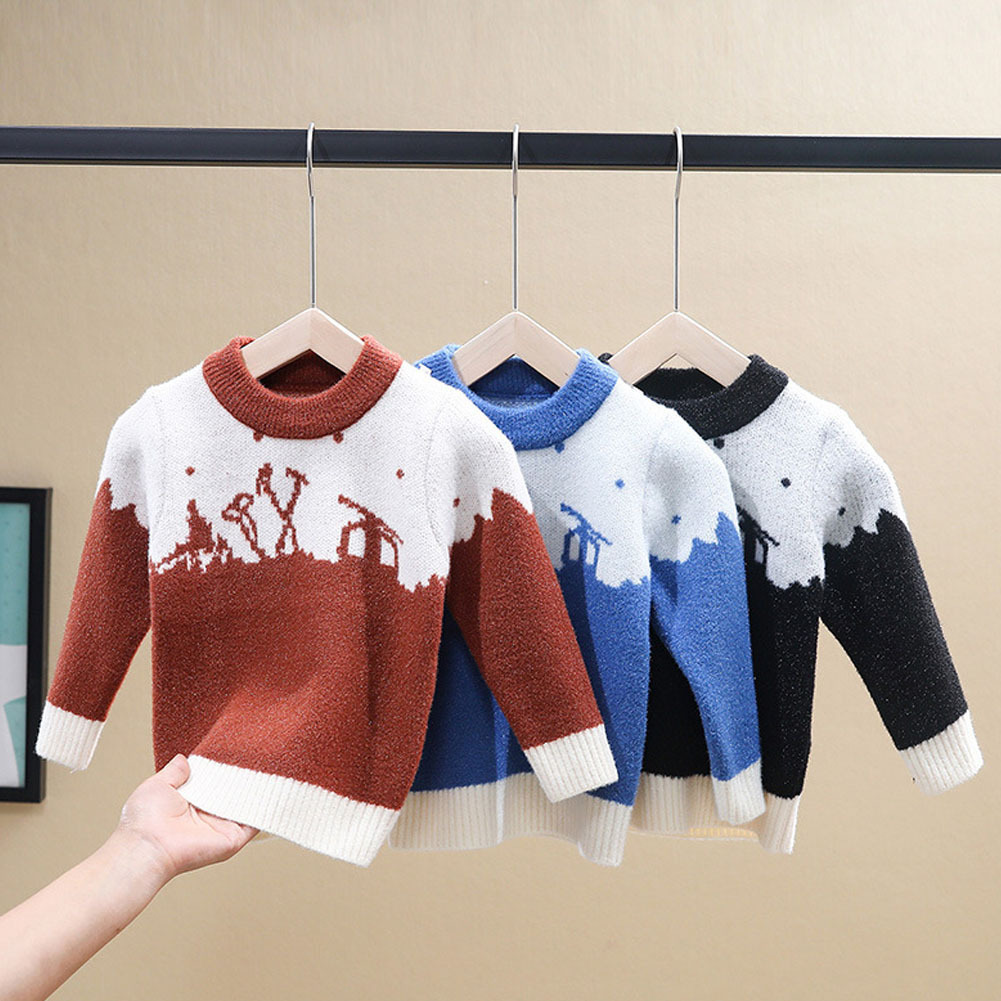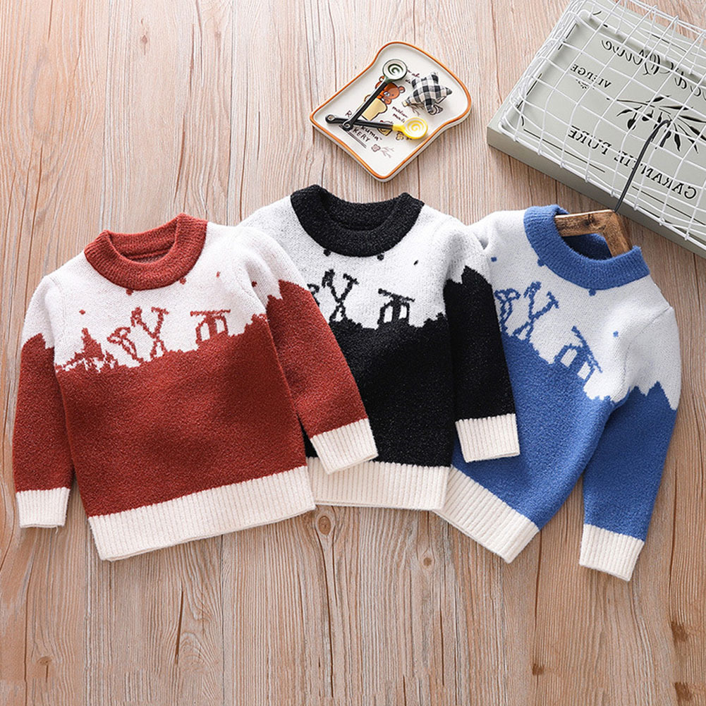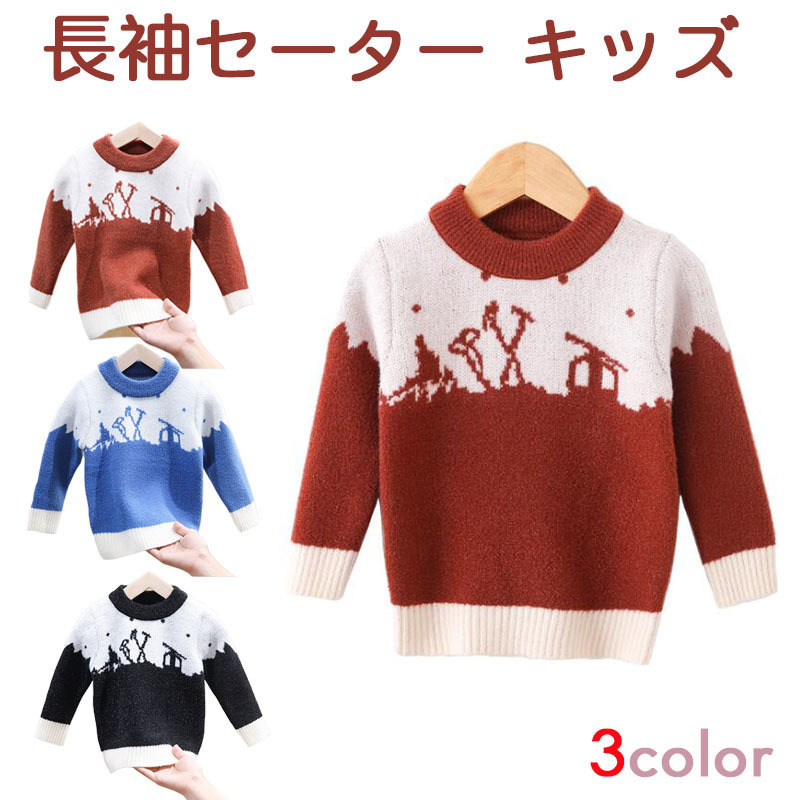 長袖セーター キッズ 子ども トップス プルオーバー ニットセーター ラウンドネック 丸首 バイカラー ボーダー カジュアル シンプル