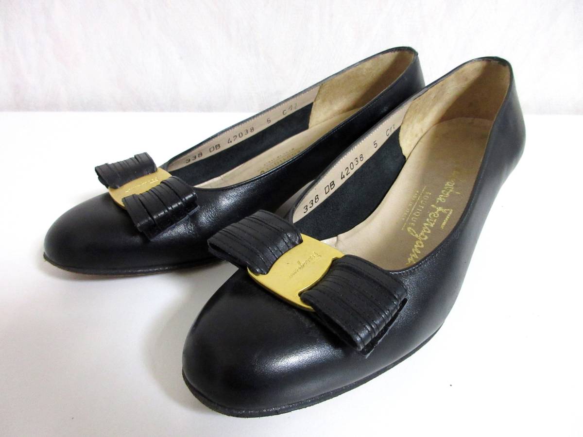 サルヴァトーレフェラガモ Salvatore Ferragamo ヴァラ リボン パンプス レザー 黒 ブラック 5C 北3628