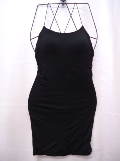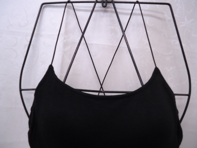 【KCM】MATO-93★新品★【W LOUNGE/ダブルラウンジ】レディース  パット付 細ゴムクロスストラップキャミ ブラック サイズF