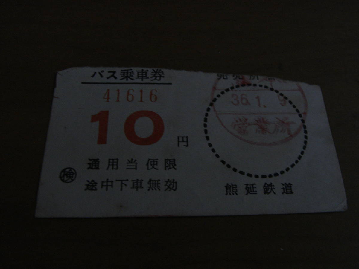 バス乗車券 10円 熊延鉄道 昭和36年1月9日 熊本営業所